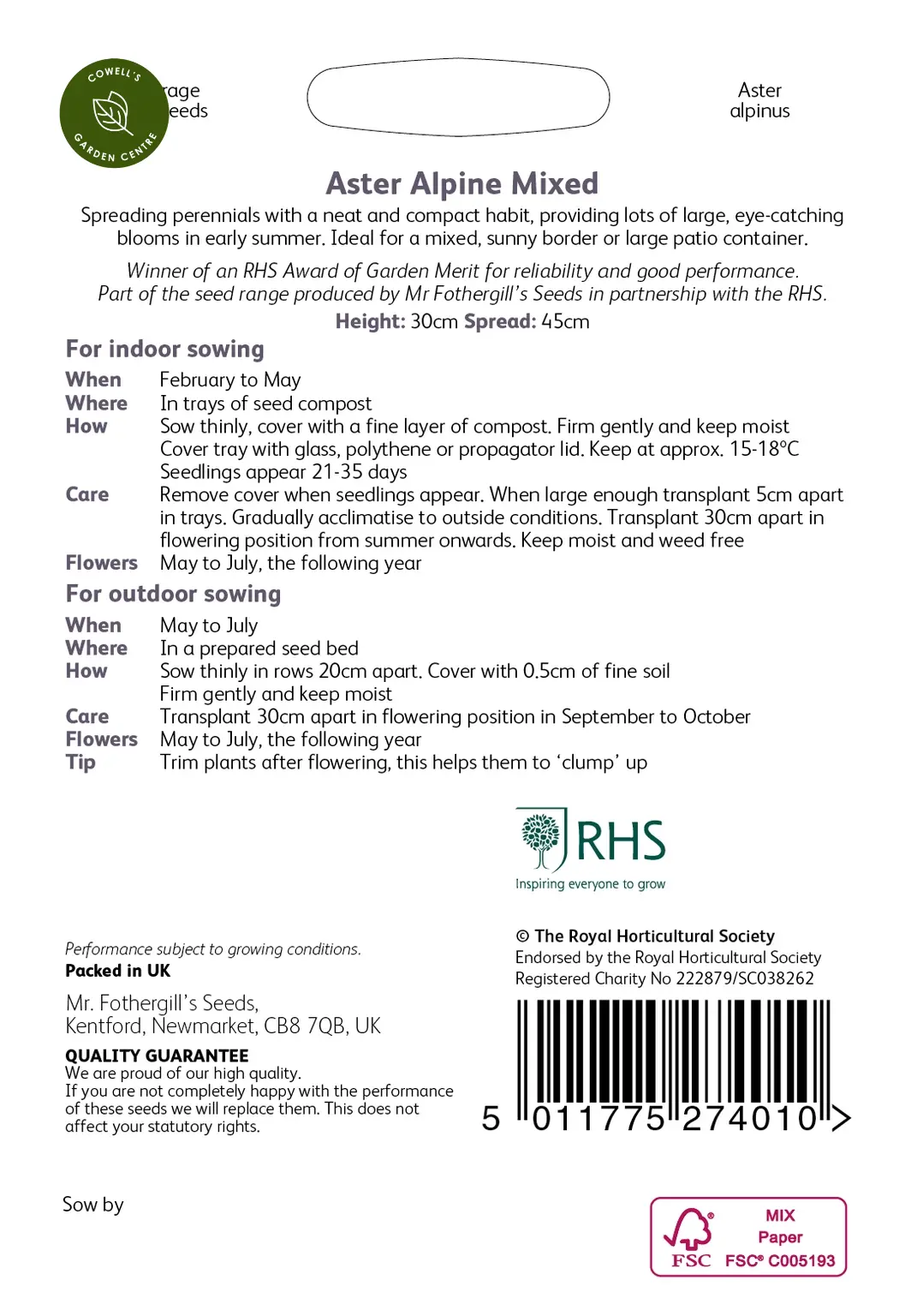 Write a review about "RHS Aster Alpine Mixed Seeds"