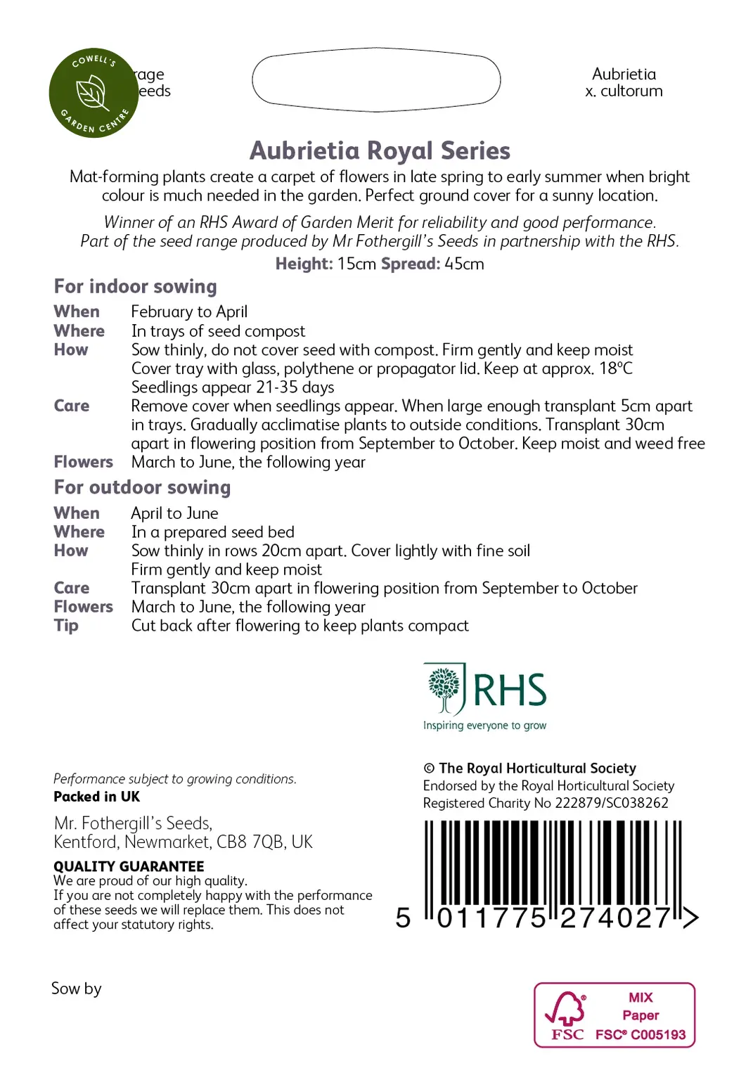 Write a review about "RHS Aubrieta Royal Series Seeds"