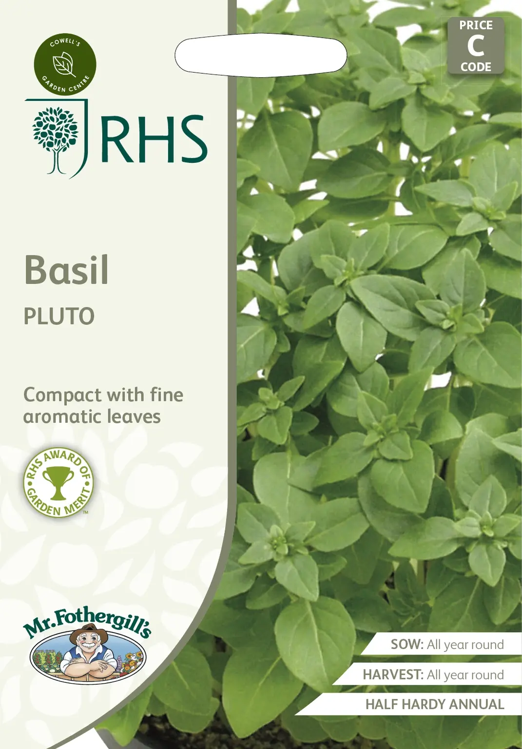 A deliciously aromatic, fine leaved basil. Forms compact, neatly rounded plants, perfect for windowsill pots and mixed patio planters. Prefers a sunny position. Winner of an RHS Award of Garden Merit for reliability and good performance. Part of the seed range produced by Mr Fothergill's Seeds in partnership with the RHS.