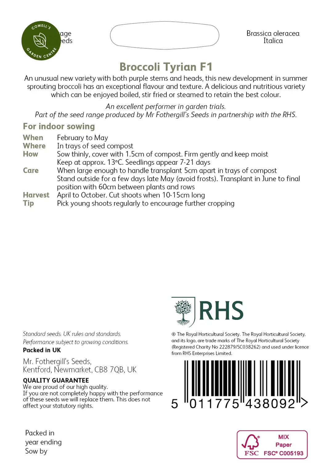 RHS Broccoli Tyrialn F1 Seeds