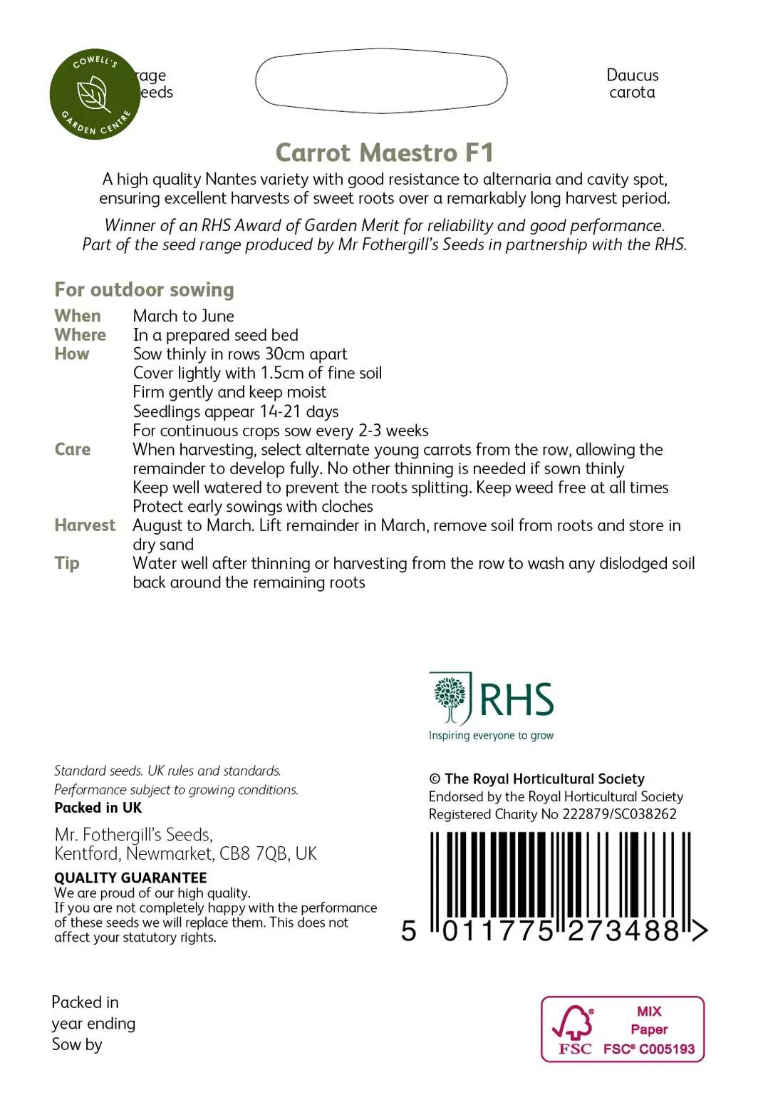 - Part of the seed range produced by Mr Fothergill’s Seeds in partnership with the RHS