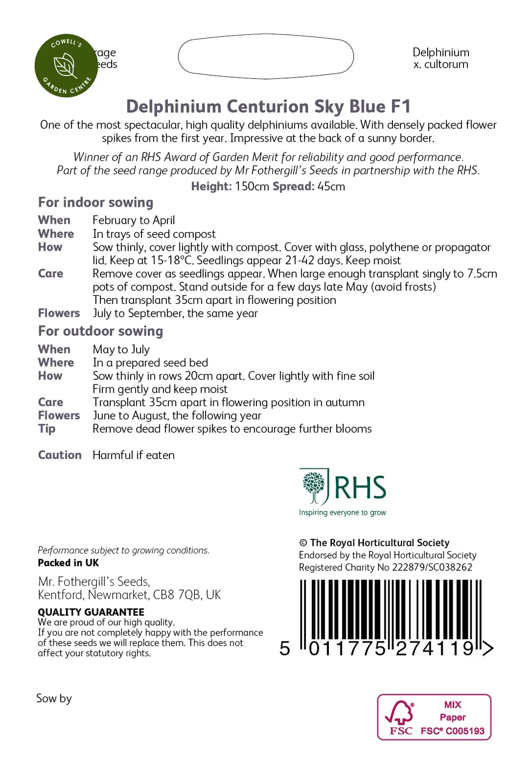 RHS Delphinium Centurion Sky Blue F1 Seeds
