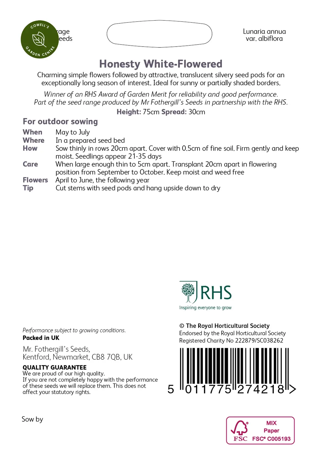 Write a review about "RHS Honesty White-Flowered Seeds"