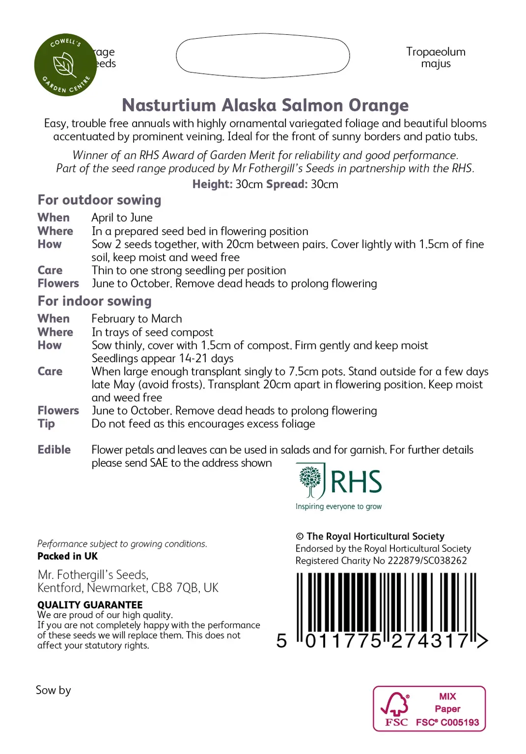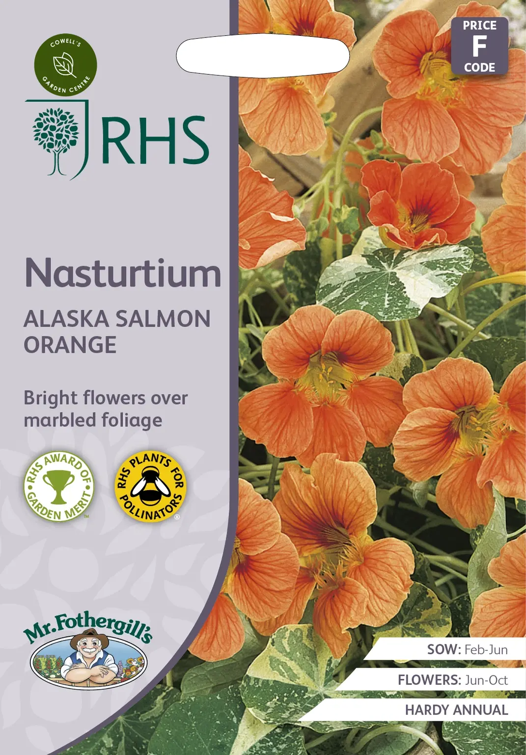 RHS Nasturtium Alaska Salmon Orange Seeds