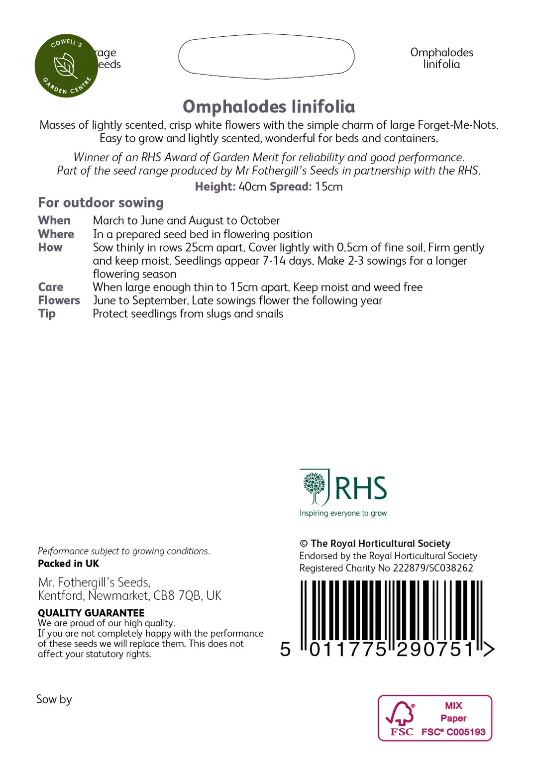 RHS Omphalodes linifolia Seeds