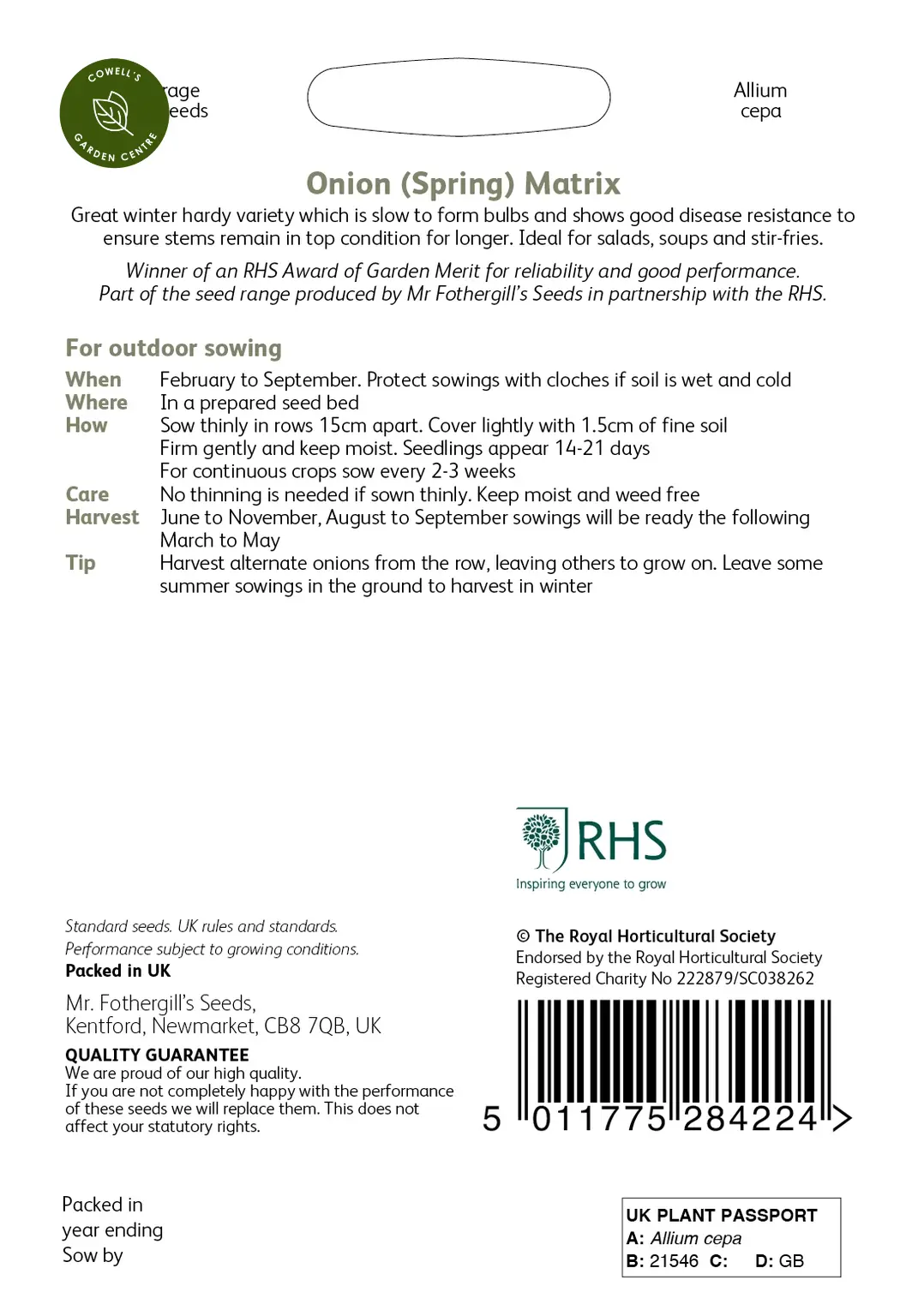 RHS Onion (Spring) Matrix Seeds