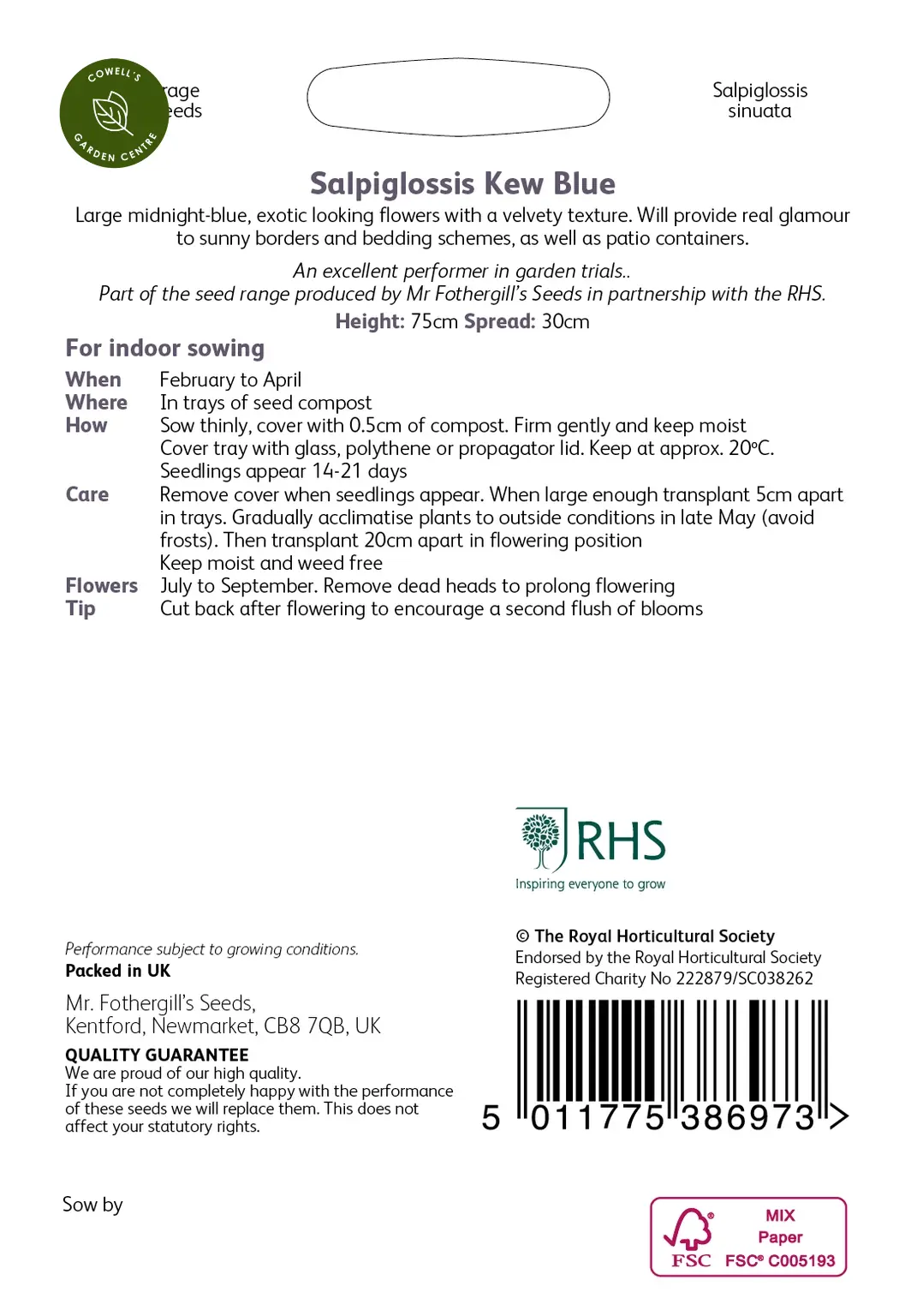 Write a review about "RHS Salpiglossis Kew Blue Seeds"