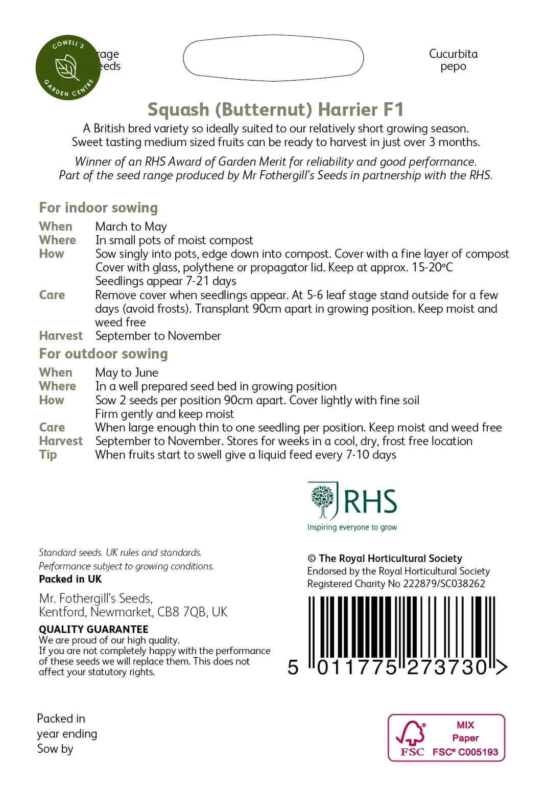 - Part of the seed range produced by Mr Fothergill’s Seeds in partnership with the RHS