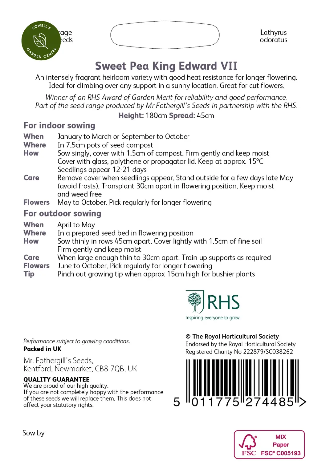 Write a review about "RHS Sweet Pea King Edward VII Seeds"