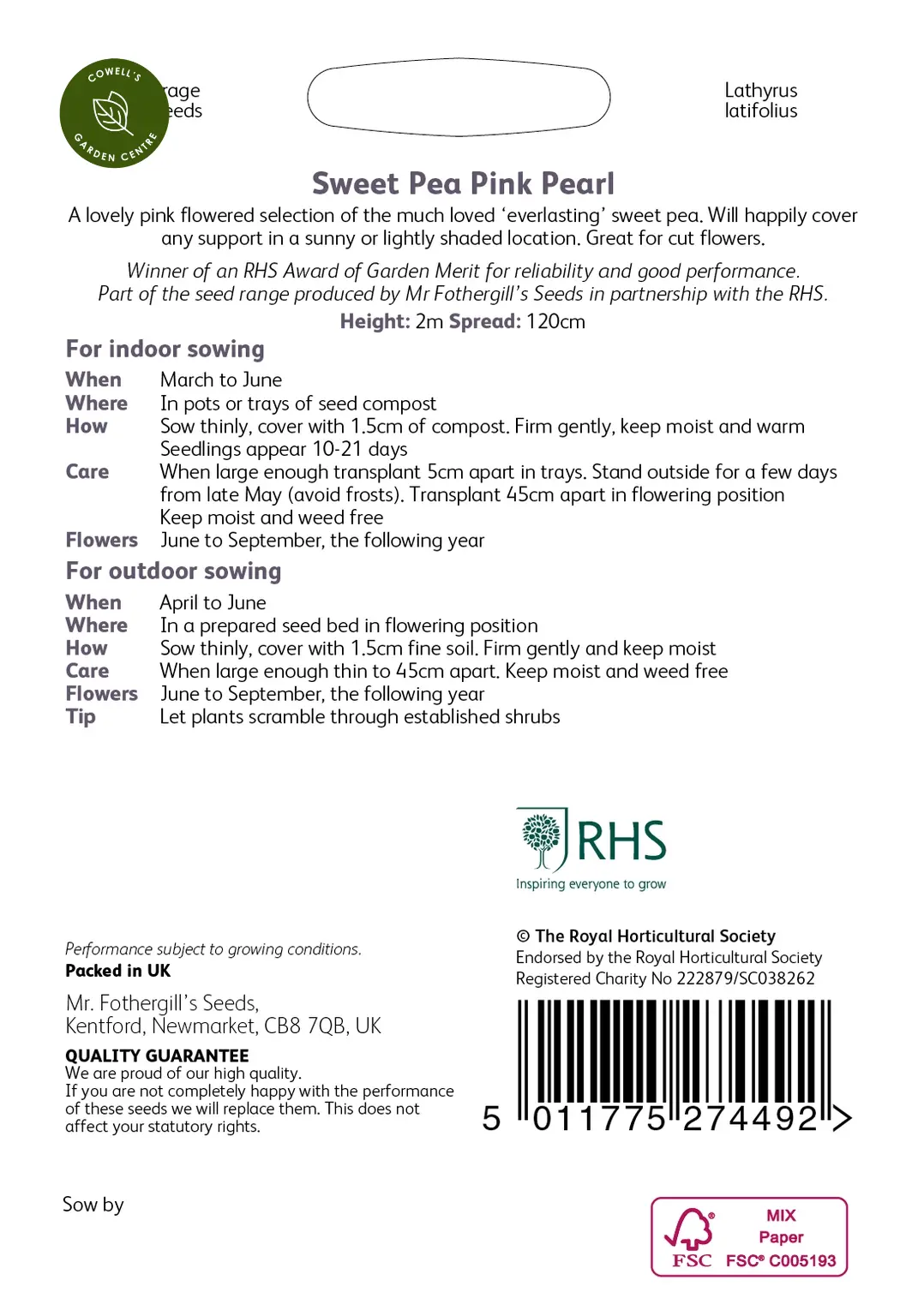Write a review about "RHS Sweet Pea Pink Pearl Seeds"