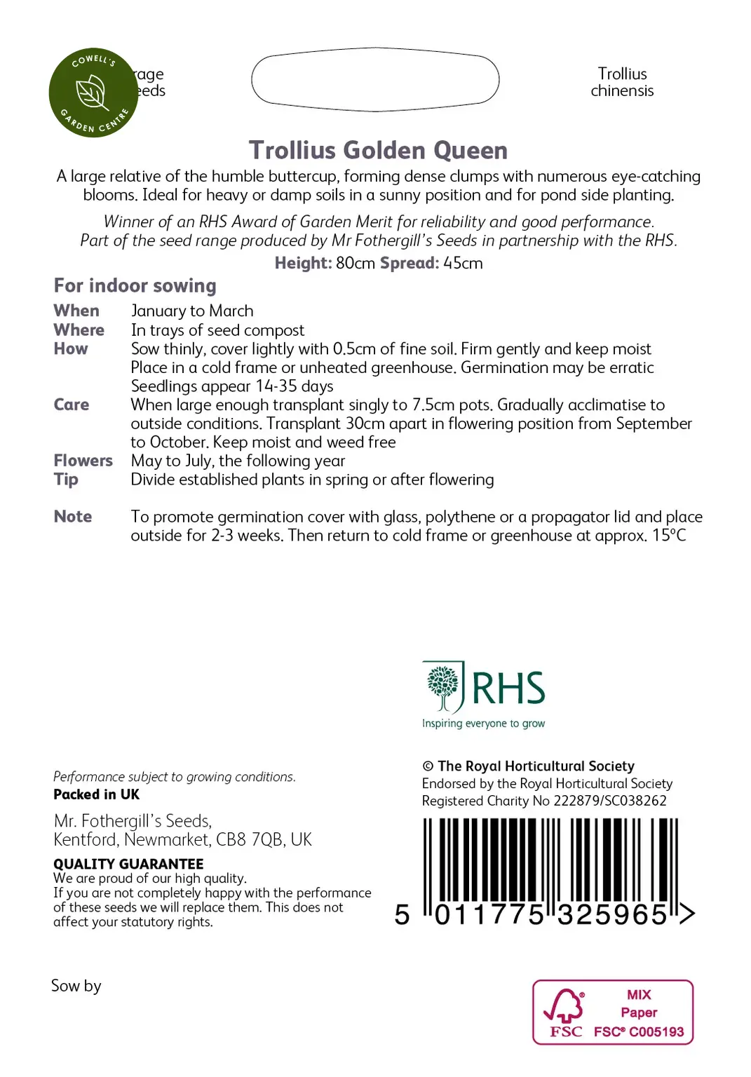 Write a review about "RHS Trollius Golden Queen Seeds"