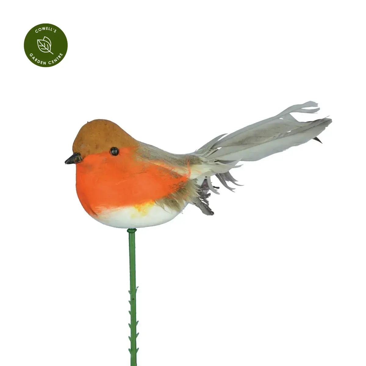Sweet feathery robin decoration on stem, to add into a festive arrangement.