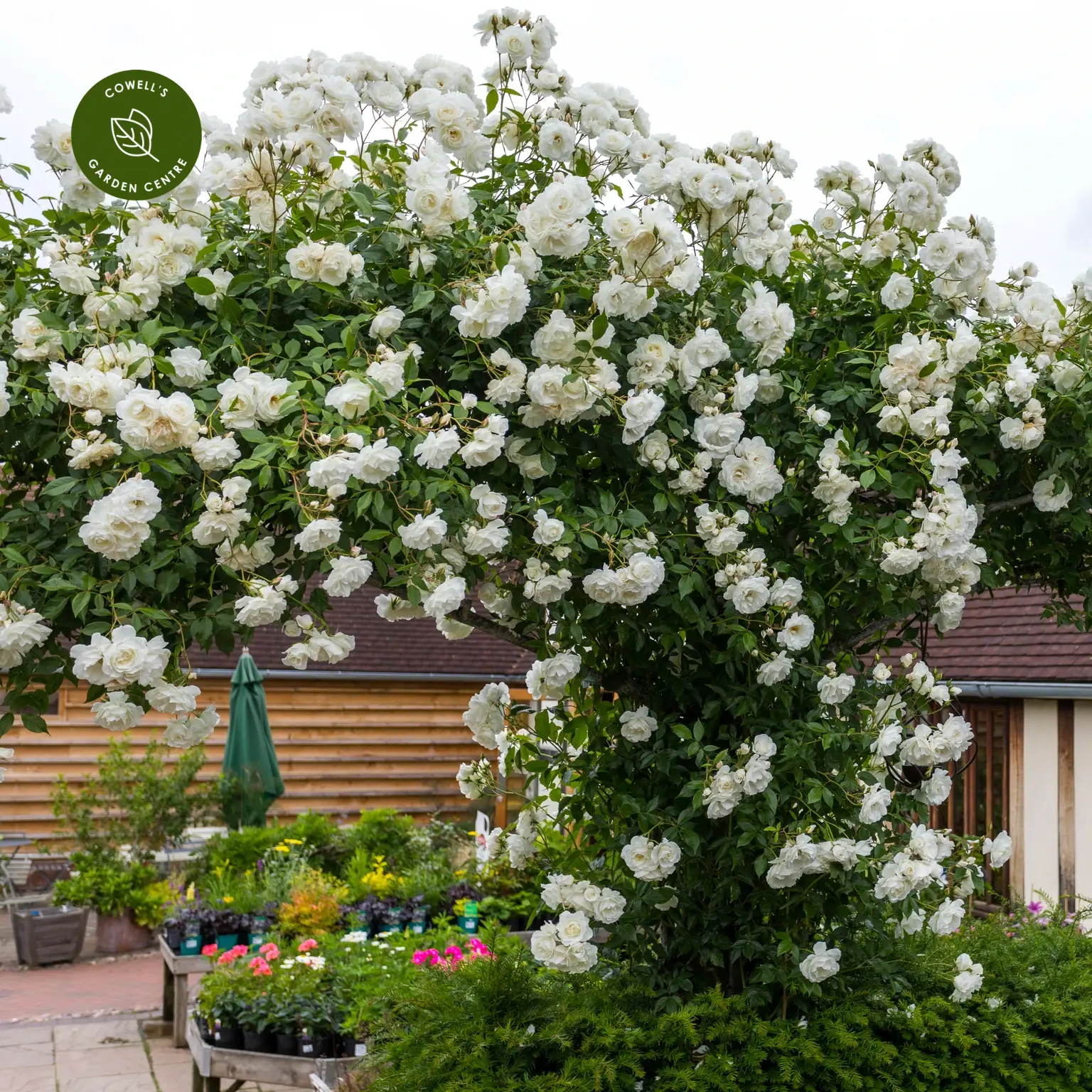 Its long flowering season, combined with glossy green foliage and a light fragrance, makes it one of the most popular white climbing roses. Perfect for walls, arches, or pergolas, where it will provide months of elegant colour and charm.