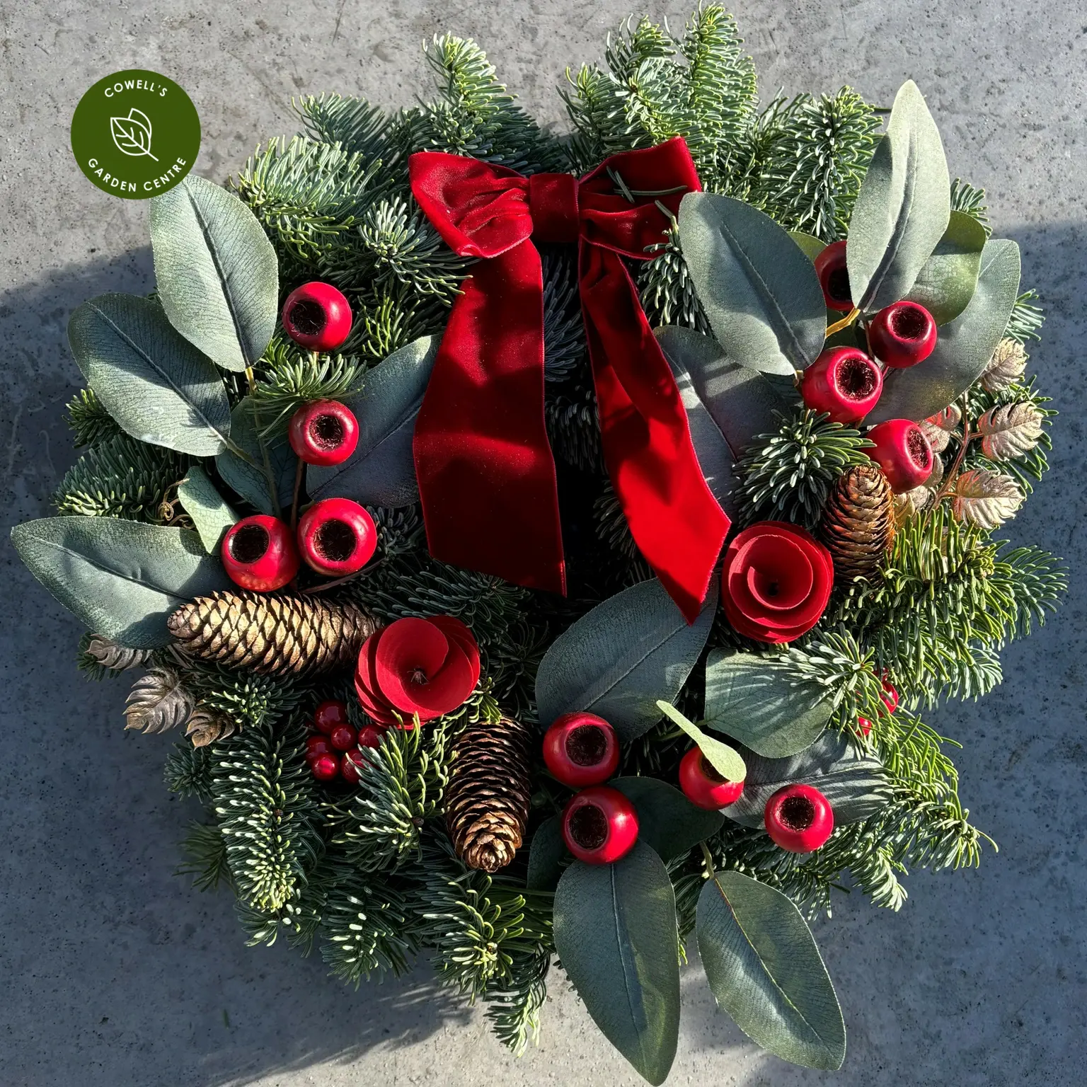 This wreath is made from the finest Noble Fir foliage sourced from sustainably managed British forests.