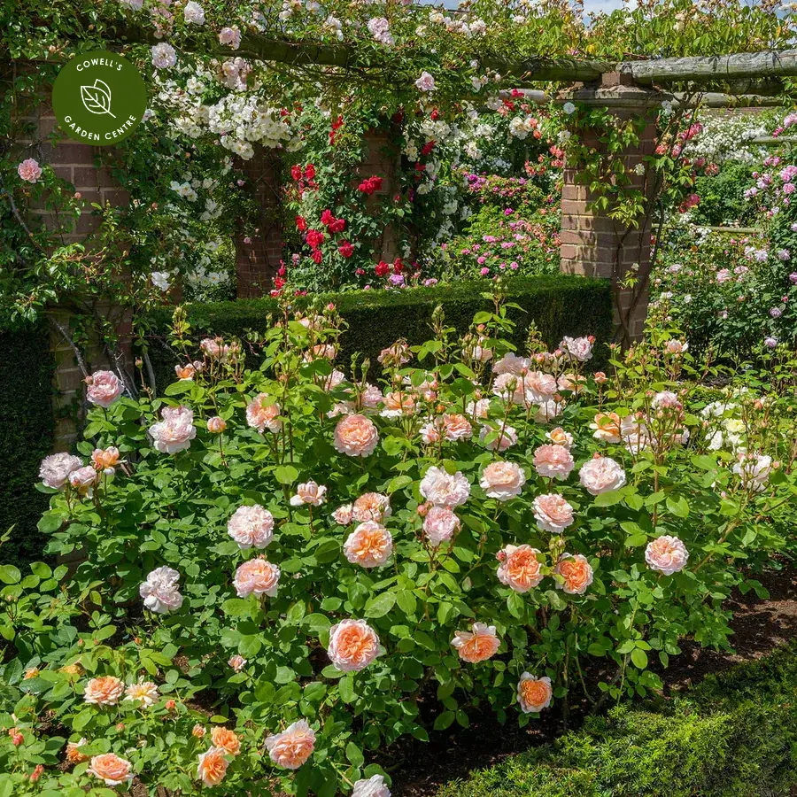 Introduced by David Austin in 2013, this English shrub rose forms a well-balanced, medium-sized plant ideal for borders, containers or hedging. It flowers repeatedly through the season and carries a lovely Tea fragrance with hints of cedar wood and vanilla, adding further depth and interest.