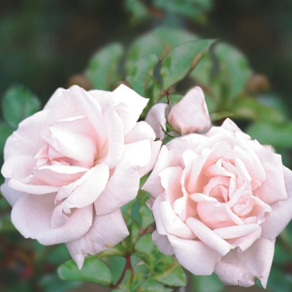 - Soft flesh-pink blooms in open double form