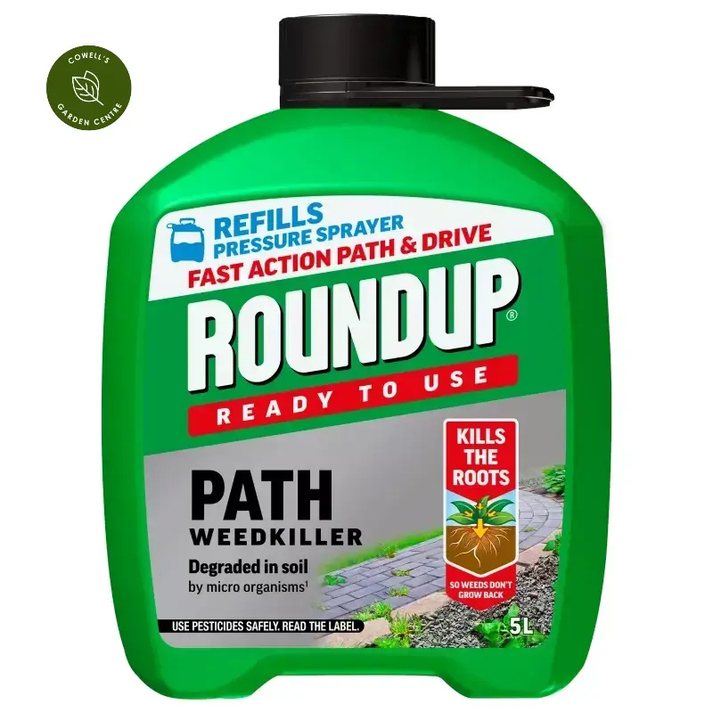 Roundup Ready to Use Path Weedkiller - Pump ‘n Go provides a Pump ‘n Go feature for up to 3 minutes of continuous spraying. The formulation is absorbed by leaves and moves through the entire plant, above and below the ground, to destroy weeds growing through all hard surfaces including drives, patios, paths, tarmac, gravel and paving. It is inactivated on contact with the soil and is then broken down by soil micro-organism, to allow replanting.