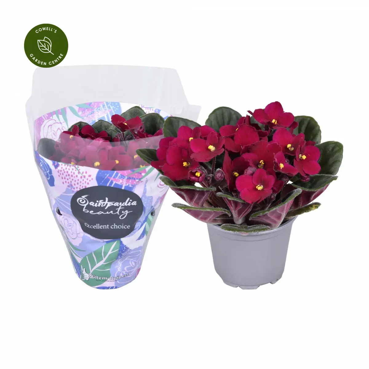 Saintpaulia 'Red' is a charming African violet with velvety, deep green leaves and clusters of rich red flowers that brighten indoor spaces throughout the year. Compact and free-flowering, it’s a favourite houseplant for windowsills, desks, and small decorative displays.