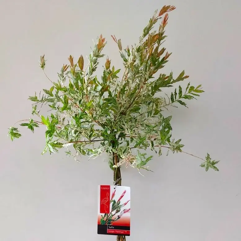 Salix integra 'Hakuro-nishiki' is a striking deciduous willow grown in standard form, prized for its dramatic, colour-changing foliage. In spring, fresh growth bursts into shades of soft pink, creamy white and green, forming a rounded canopy that resembles a flamingo’s plumage.
