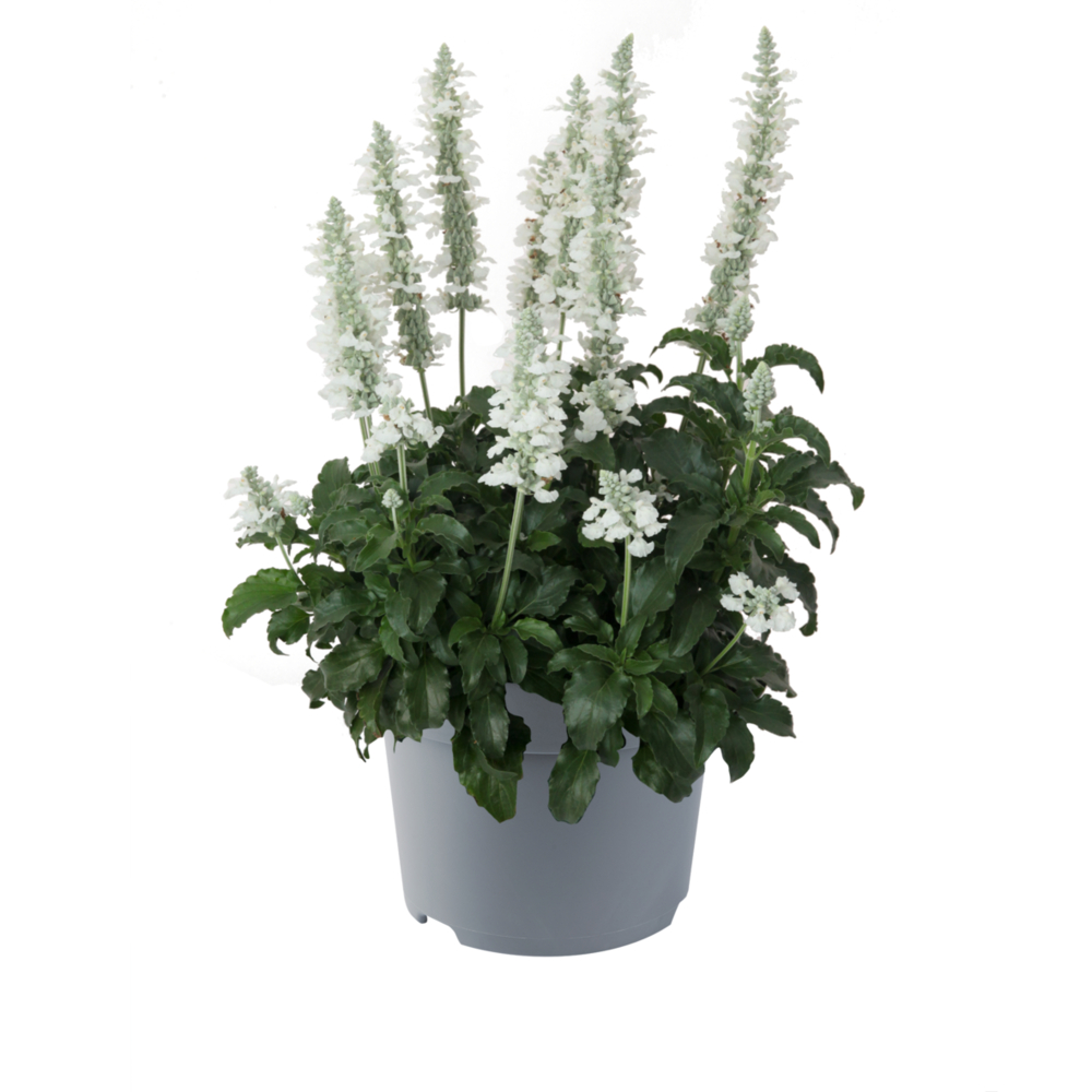Salvia 'Sallyfun Pure White' is a compact, free-flowering perennial producing masses of pure white blooms from early summer through to autumn. Its neat habit and long flowering season make it a brilliant choice for adding clean, fresh colour to borders and containers.