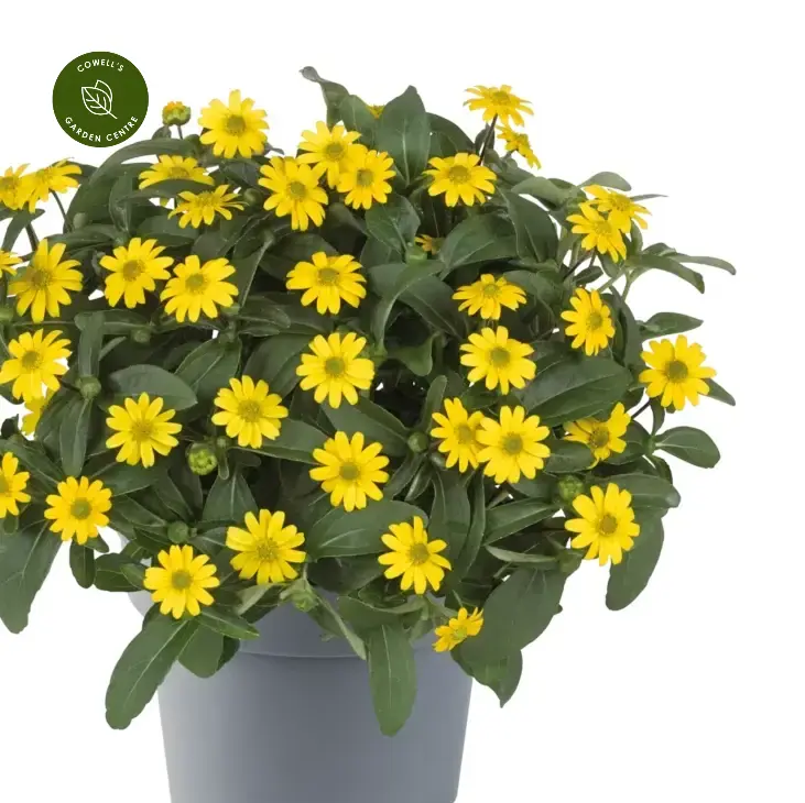 Sanvitalia 'Sun Bright Yellow' is a cheerful, low-growing plant producing masses of bright yellow, daisy-like flowers with dark centres. Its trailing, spreading habit creates a vibrant carpet of colour throughout the summer.