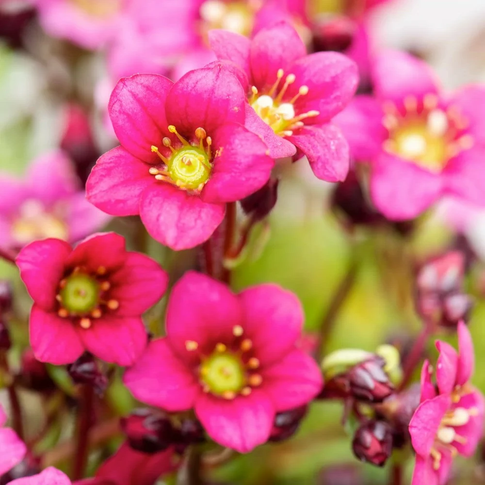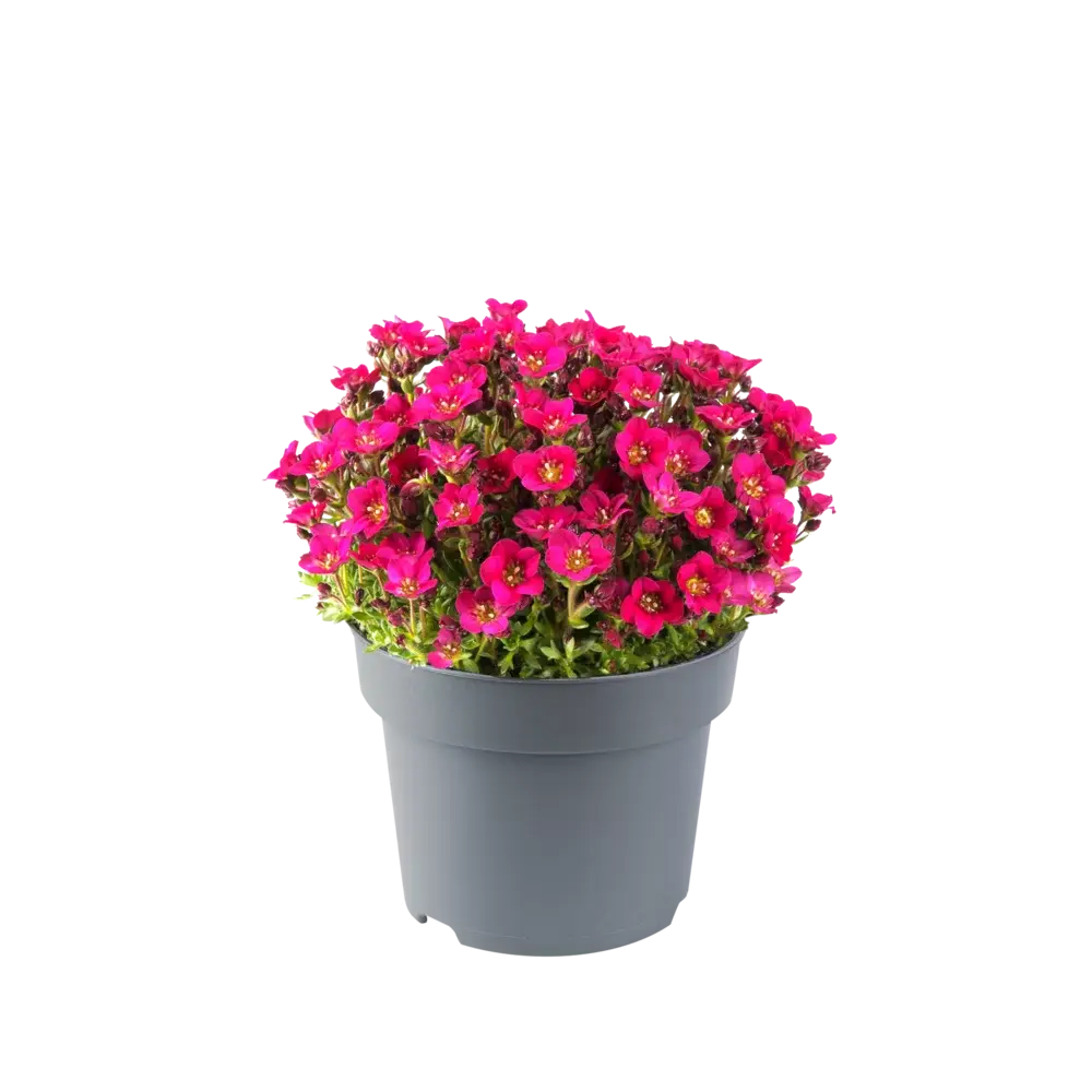 Saxifraga × arendsii 'Marto Rose' is a delightful evergreen alpine forming neat, compact mats of mossy green foliage topped with vibrant rose-pink flowers. Blooming from March to May, it provides a cheerful burst of early colour, making it ideal for rockeries, alpine troughs, or the front of sunny borders.