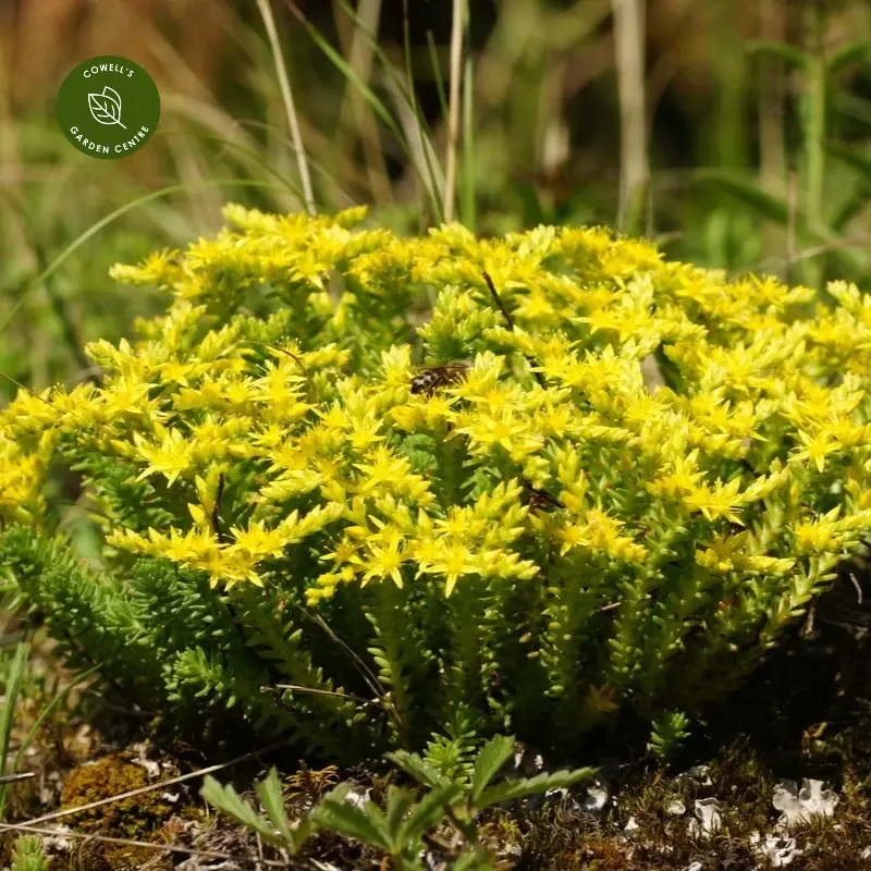 In early to mid-summer, clusters of small star-shaped yellow flowers appear above the foliage, attracting bees and other pollinators. Tough and drought tolerant once established, it is ideal for rockeries, green roofs, gravel gardens and sunny borders where it forms a dense, spreading carpet.