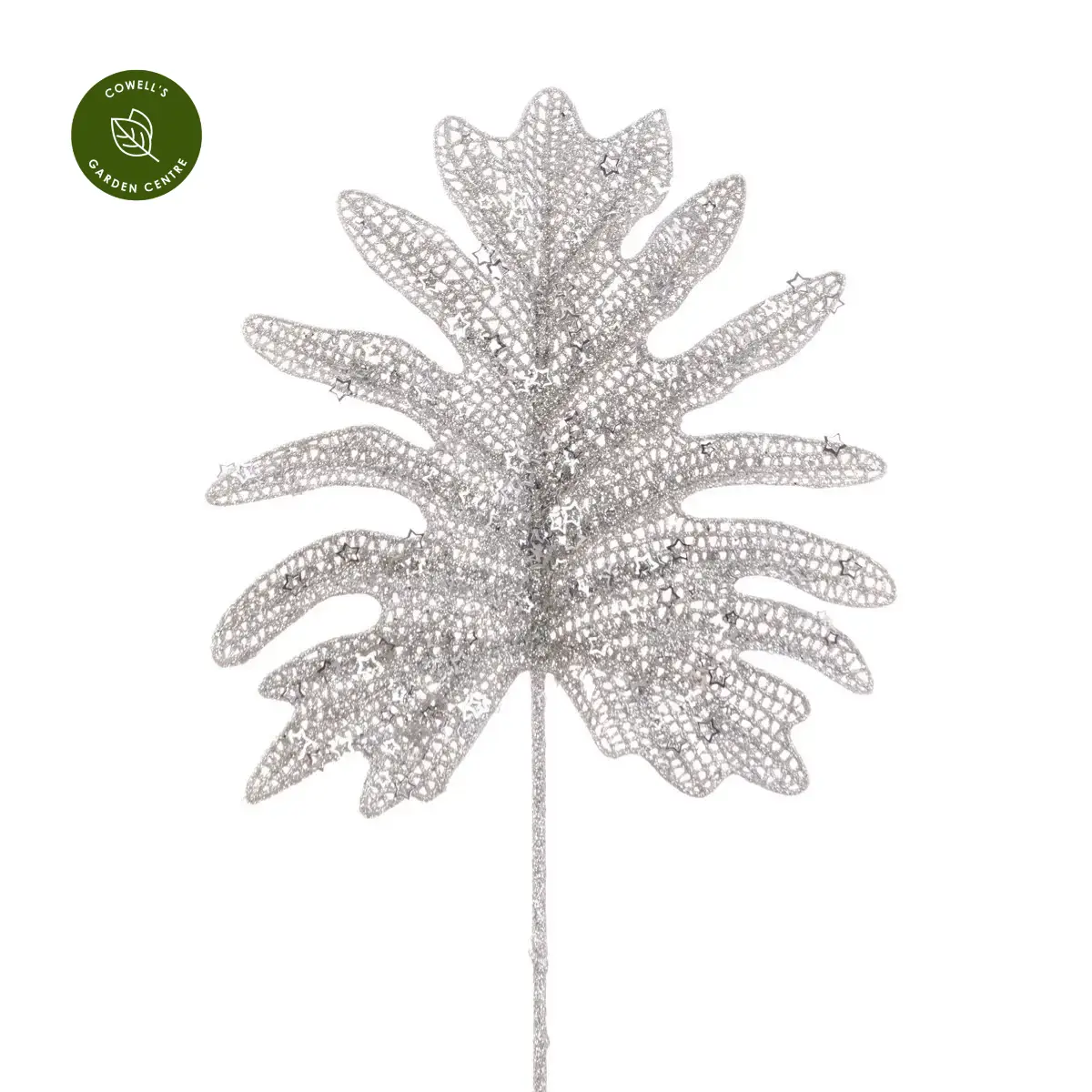 Shimmering artificial Philodendron foliage stem finished with sequin star pieces, ideal for enhancing a festive arrangement or adding into your Christmas tree.