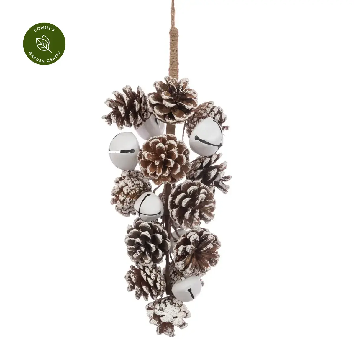 Festive hanging pinecone decoration on jute string, ideal for enhancing a festive arrangement and bringing winter charm to your home.