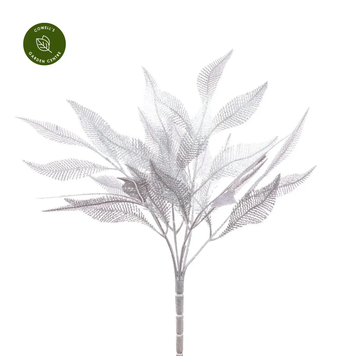 Sparkling leaf skeleton foliage pick. Use to adorn your tree, home, or add into a table centrepiece.