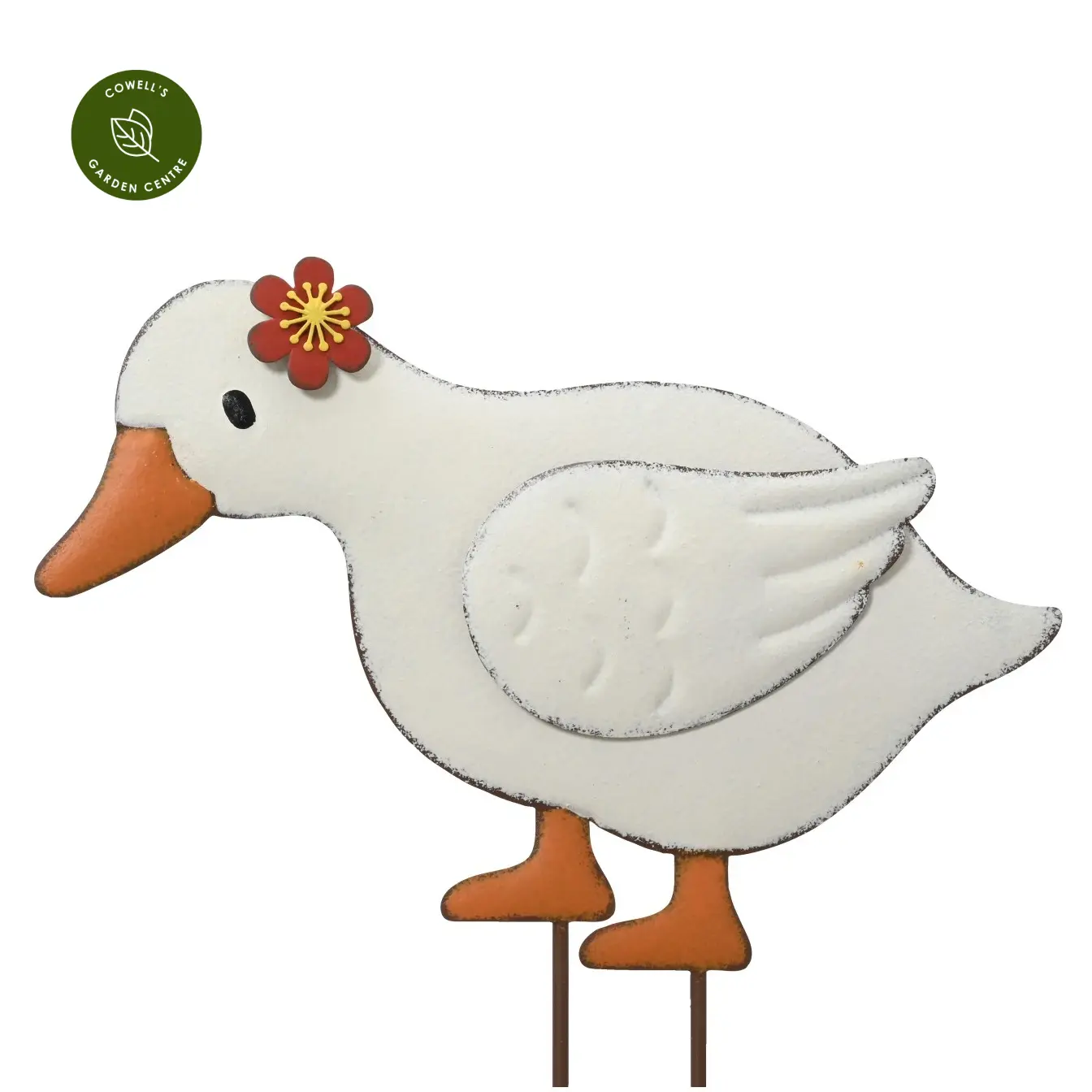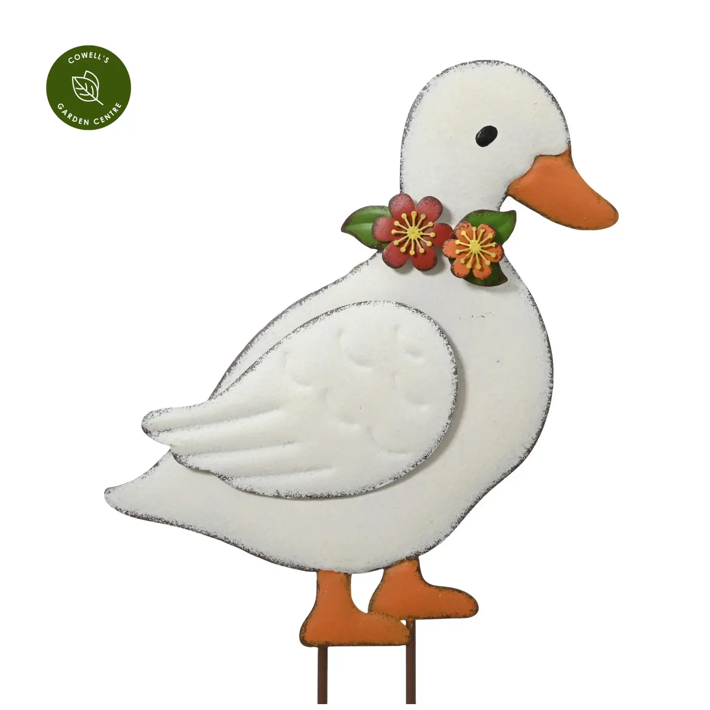 Cute iron duck stake with spring flower accessories.