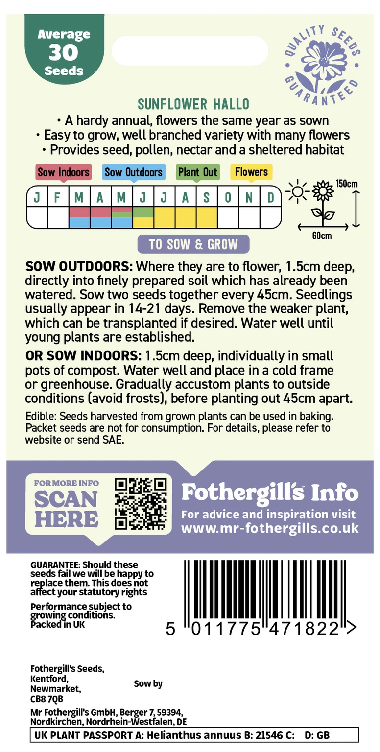 Valuable food resource for wildlife. Leave the dead flower heads to attract and help feed the wild birds in the autumn. Easy to grow but if garden pests are a problem start seeds indoors.