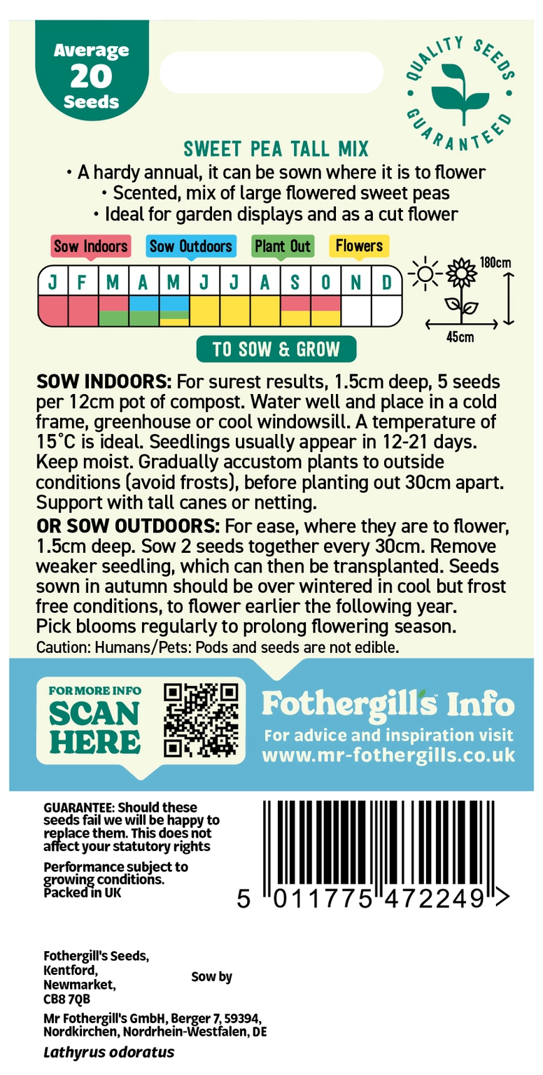 Climber with large scented blooms. Seedlings are best protected against bird damage with a few short twigs. Autumn sowings should be over wintered in cool but frost free conditions.