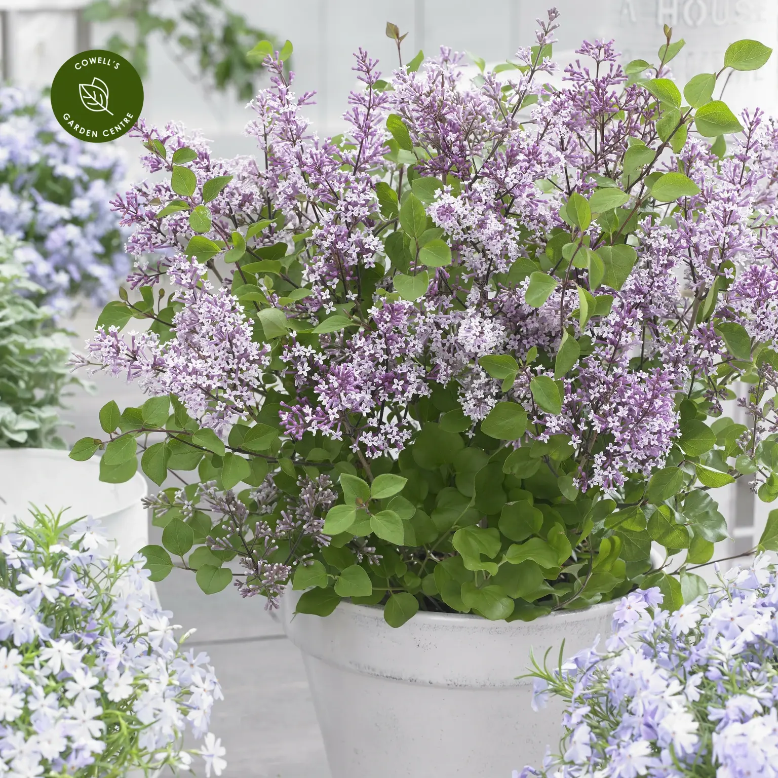 Syringa meyeri 'Flowerfesta® Purple' is a compact and free-flowering dwarf lilac, producing masses of rich purple, sweetly scented flowers in late spring. Its neat, rounded habit makes it ideal for smaller gardens, patios and container planting.