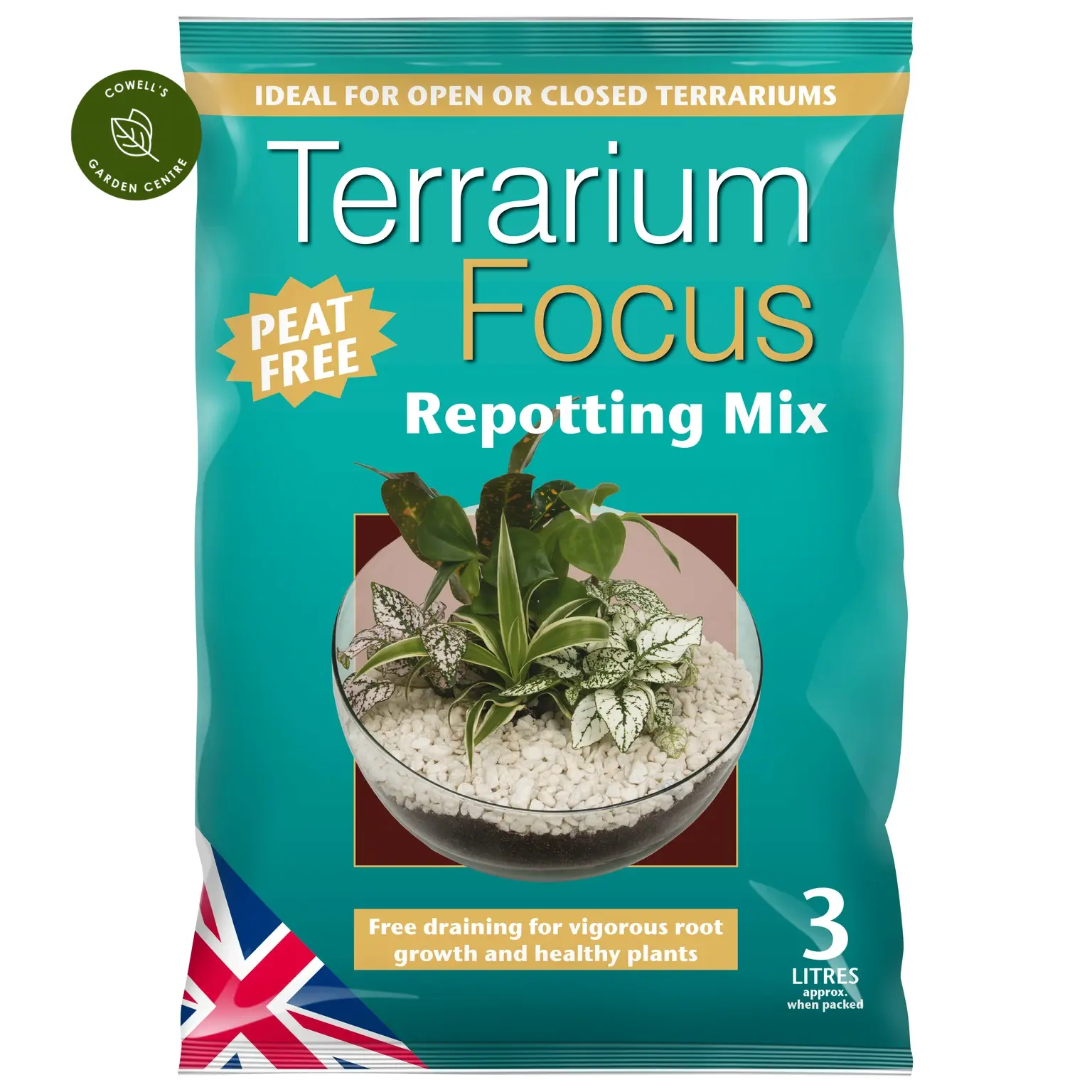 Terrarium Focus Repotting Mix is a specialist peat free blend designed to create the ideal environment for healthy, long-lasting terrarium plants. Formulated for balanced moisture, excellent drainage, and strong root development, it helps prevent rot while supporting vibrant growth in closed and open terrariums. A reliable, ready-to-use substrate perfect for beginners and experienced terrarium creators alike.