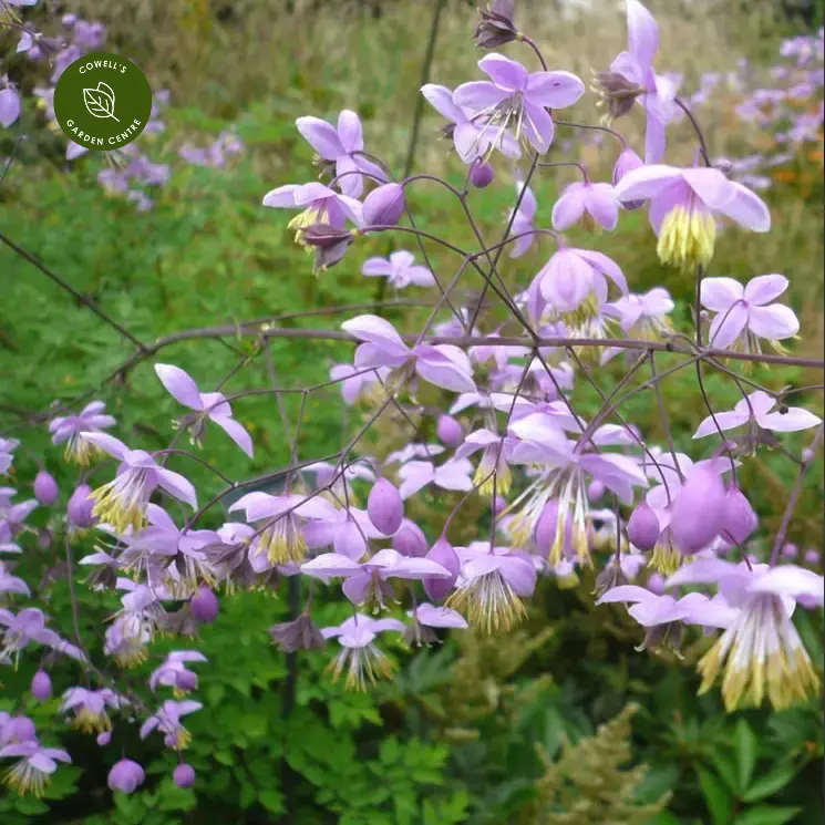 Thalictrum delavayi is an elegant, airy perennial producing clouds of delicate, nodding lilac-pink flowers held on tall, wiry stems above finely divided, fern-like foliage. Flowering from mid to late summer, it adds height, movement and a light, transparent effect to borders.
