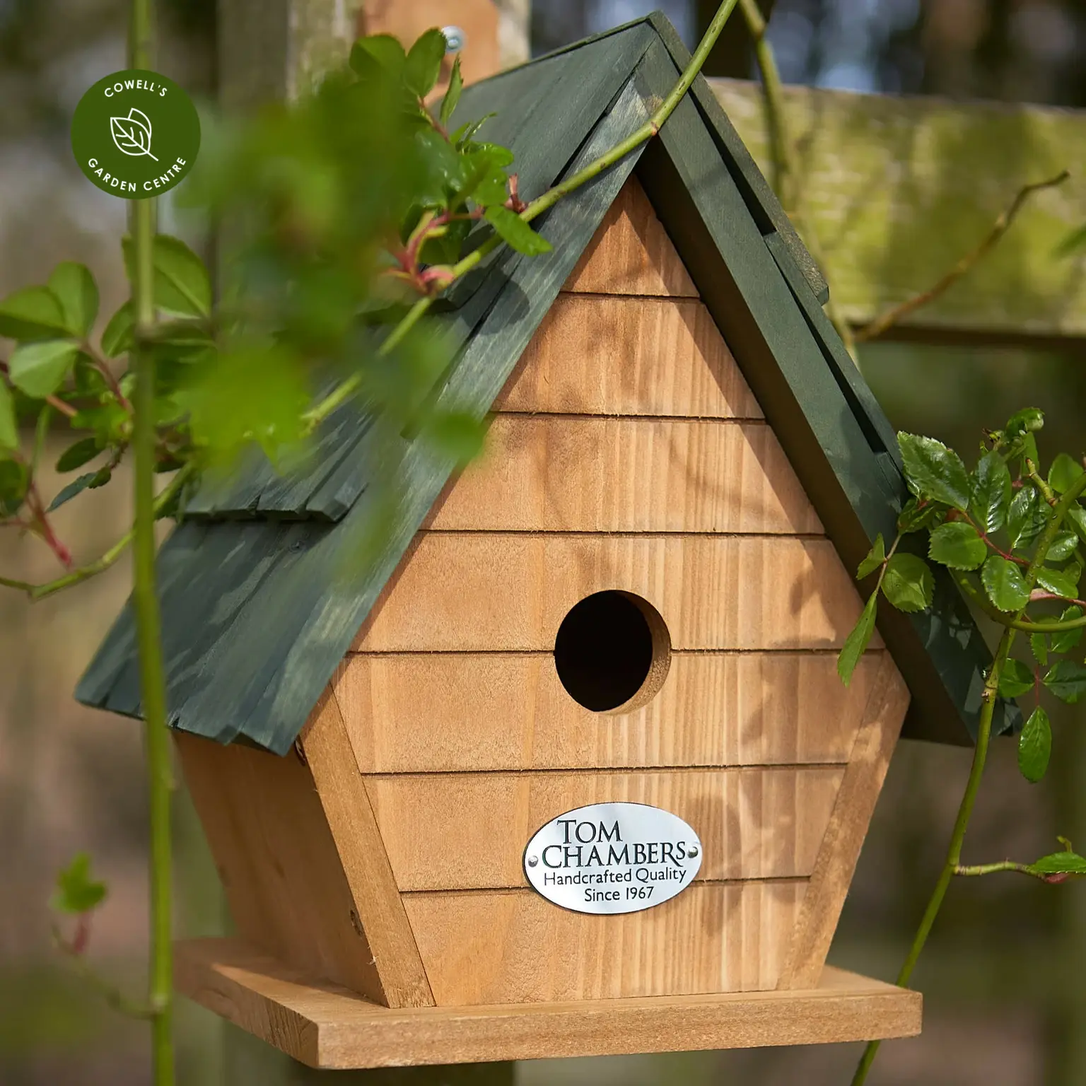 Featuring the Tom Chambers label, the traditional nest boxes are crafted in the UK from sustainable wood. The range includes a small sized entrance to encourage as wide a range of birds with safety and security.