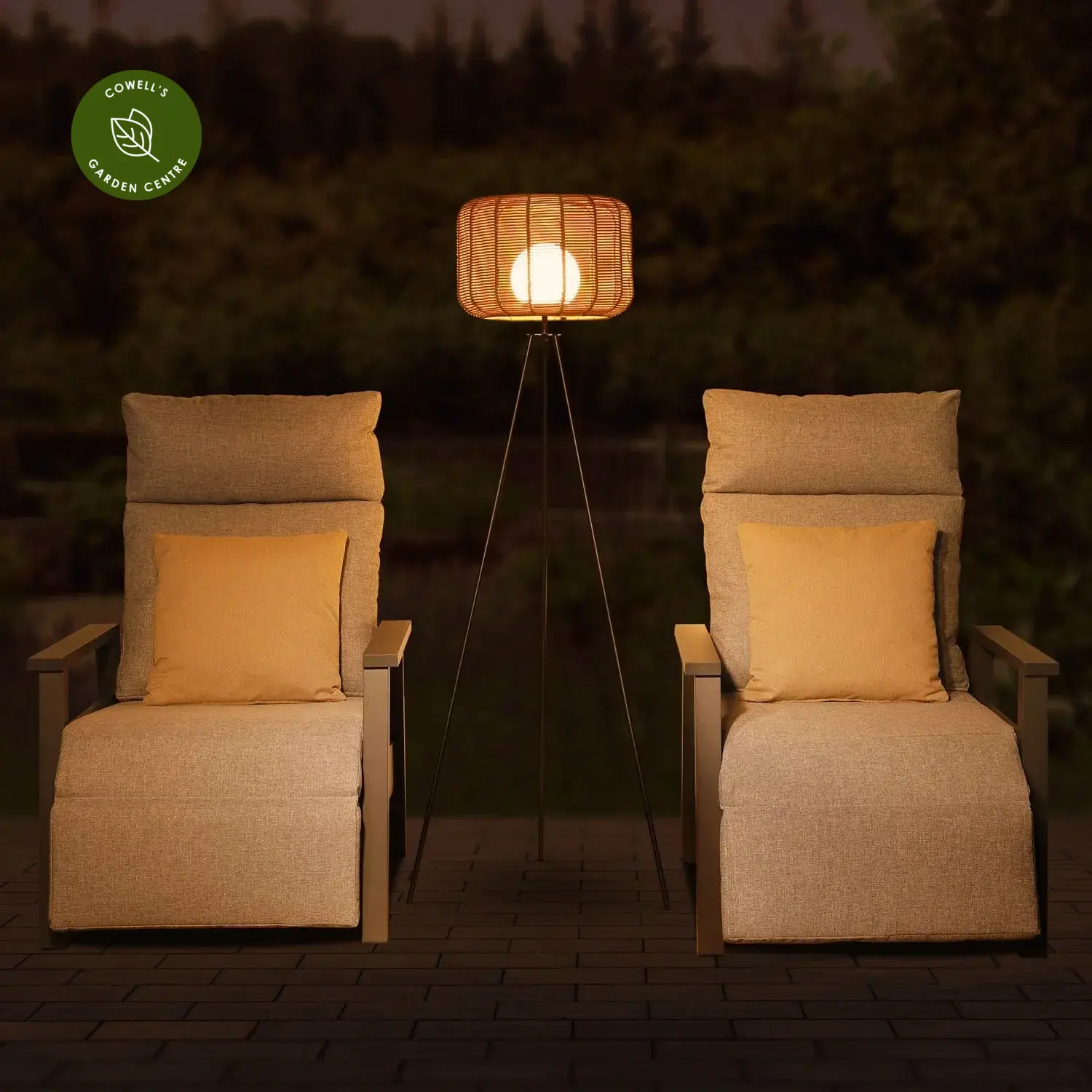 Bring warm, atmospheric lighting to patios, terraces, and garden seating areas with the Toscana Sesame Rattan Floor Lamp. Standing 1.5m tall, this elegant outdoor lamp features a durable rattan-style weave designed for exterior use, creating a relaxed, contemporary look.