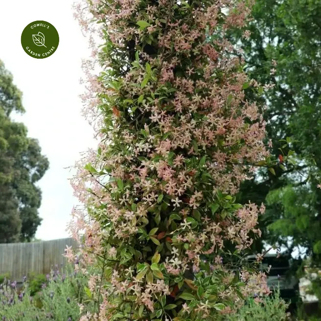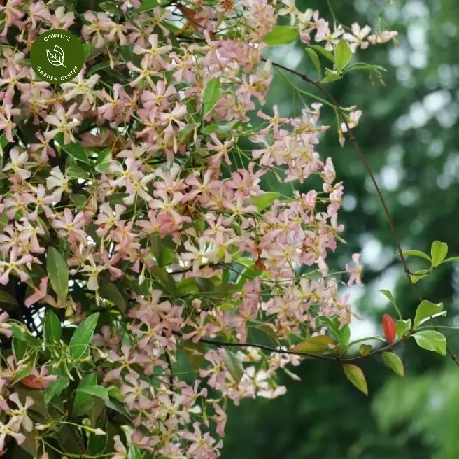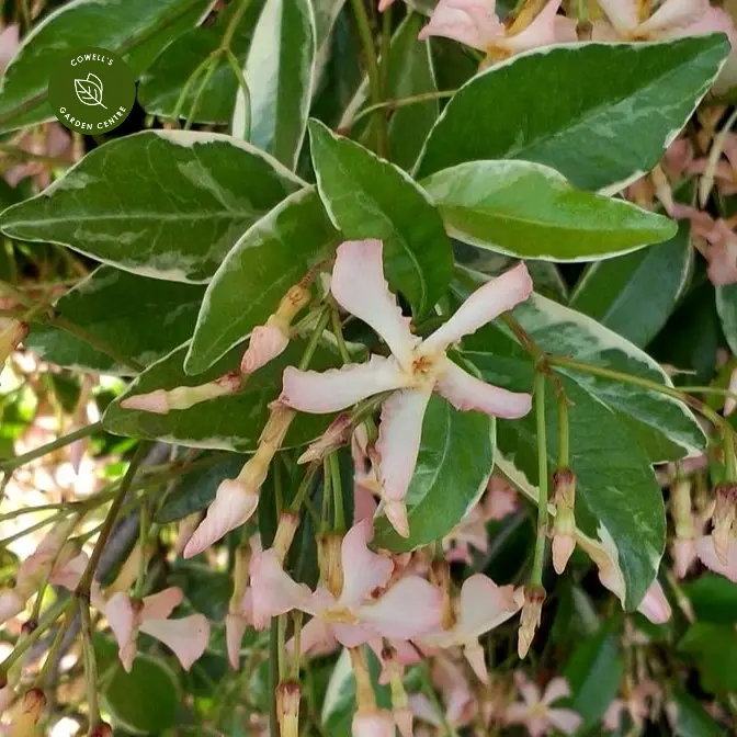 Trachelospermum 'Star of Milano' is a distinctive evergreen climber that brings both fragrance and colour to the summer garden. From May to September, it produces an abundance of delicate, pinwheel-shaped flowers in shades of soft blush pink, each releasing a sweet, heady scent. Its long flowering season ensures continuous interest, while the dark green foliage with crisp white variegation adds decorative value throughout the year.