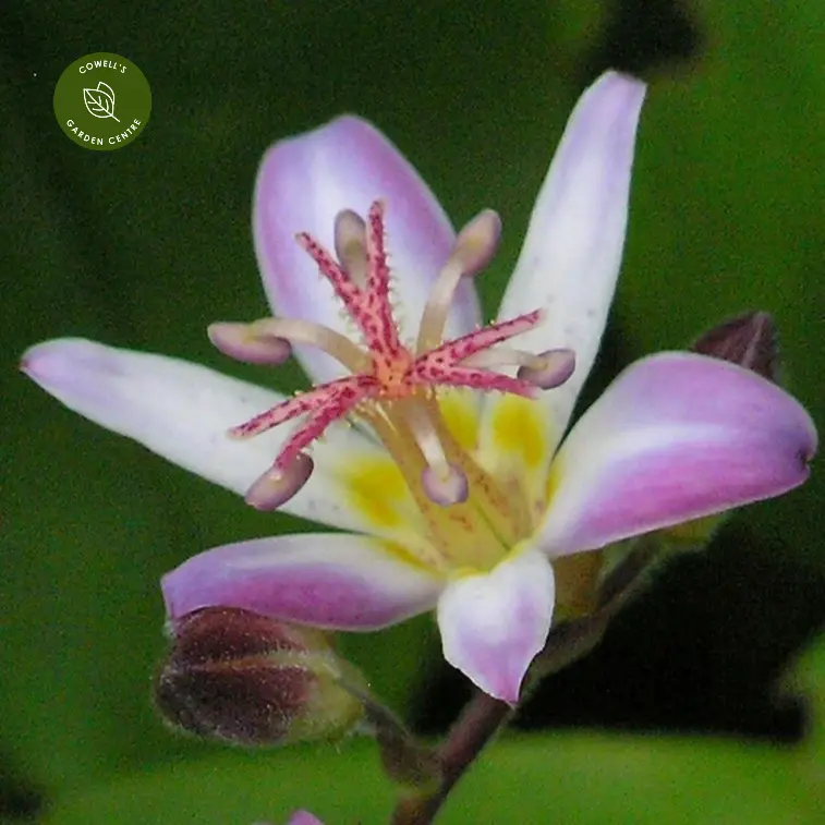 Tricyrtis 'Tojen' is an elegant, shade-loving perennial producing exotic, orchid-like flowers in soft lavender tones flushed with white and highlighted by gentle yellow centres. The intricate blooms bring a refined, late-season display to the garden.