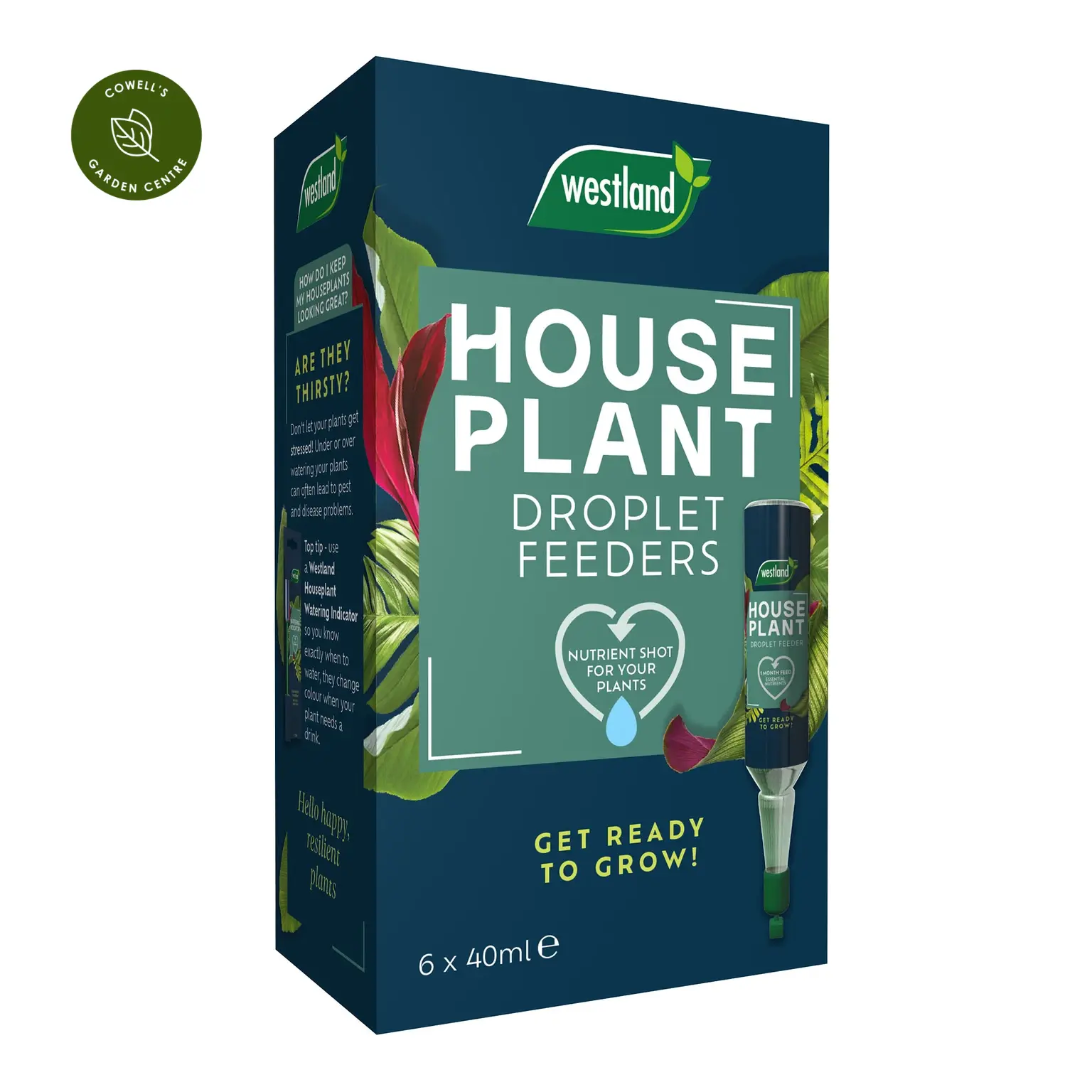 Westland Houseplant Droplet Feeder is a convenient ready to use feed that keeps houseplants healthy. It contains all the essential nutrients houseplants need for healthy growth and greener leaves. Simply, snip off the top and push into the compost and it will feed your plants for four weeks.