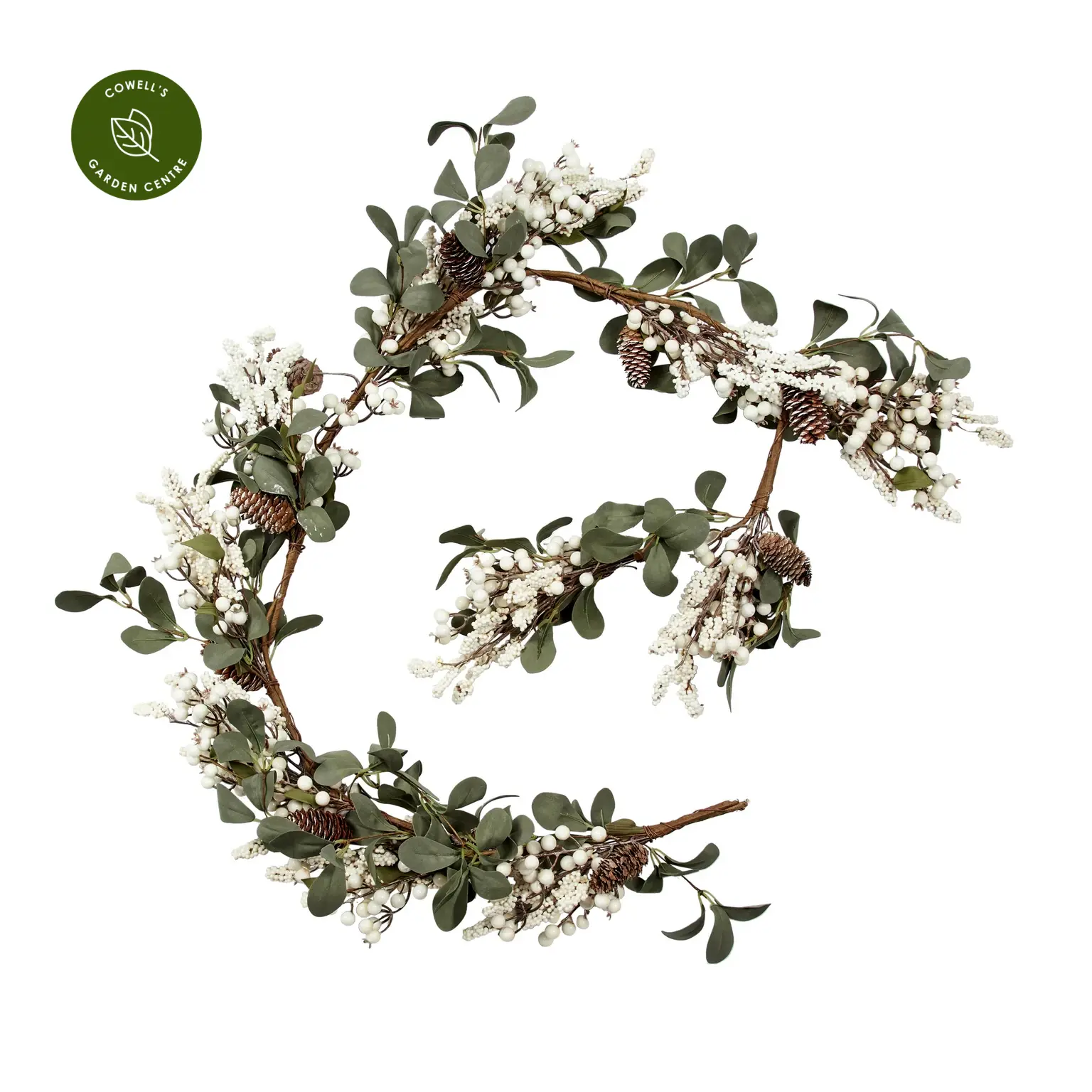 A cool artificial winterberry garland in calming colours. Add a touch of Christmas to banisters, doorways and mantelpieces.