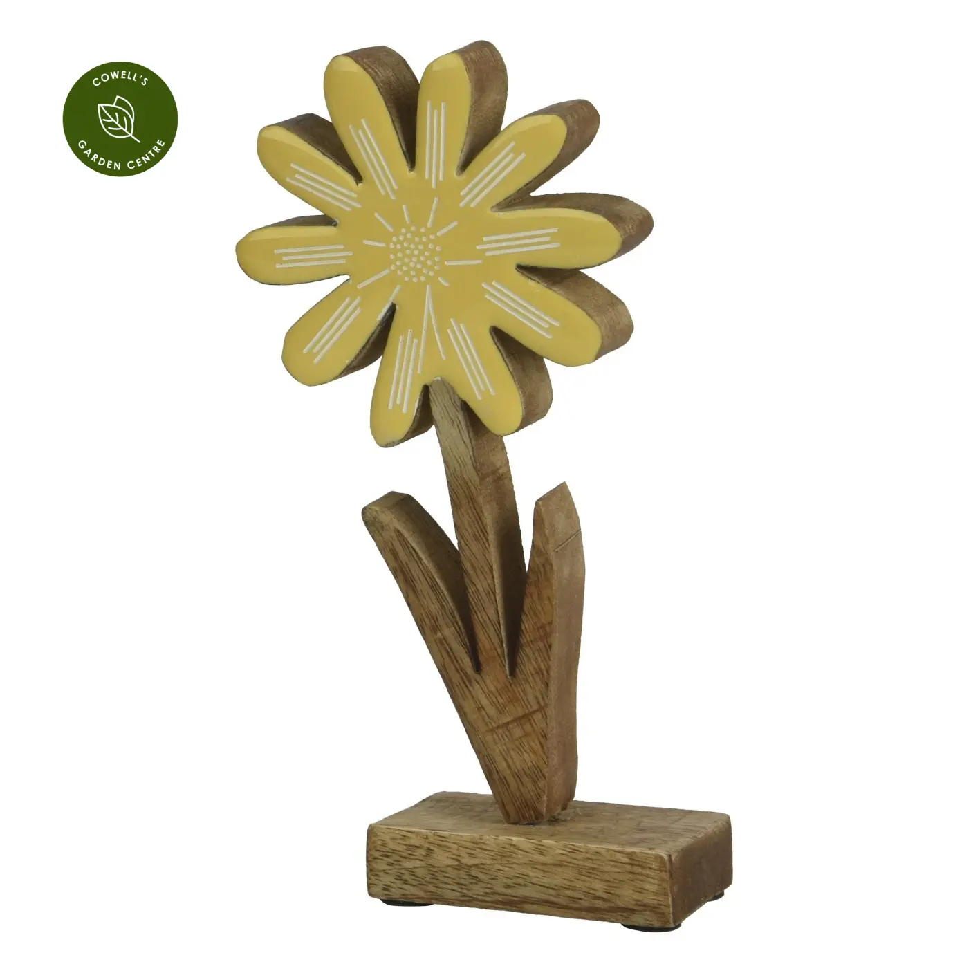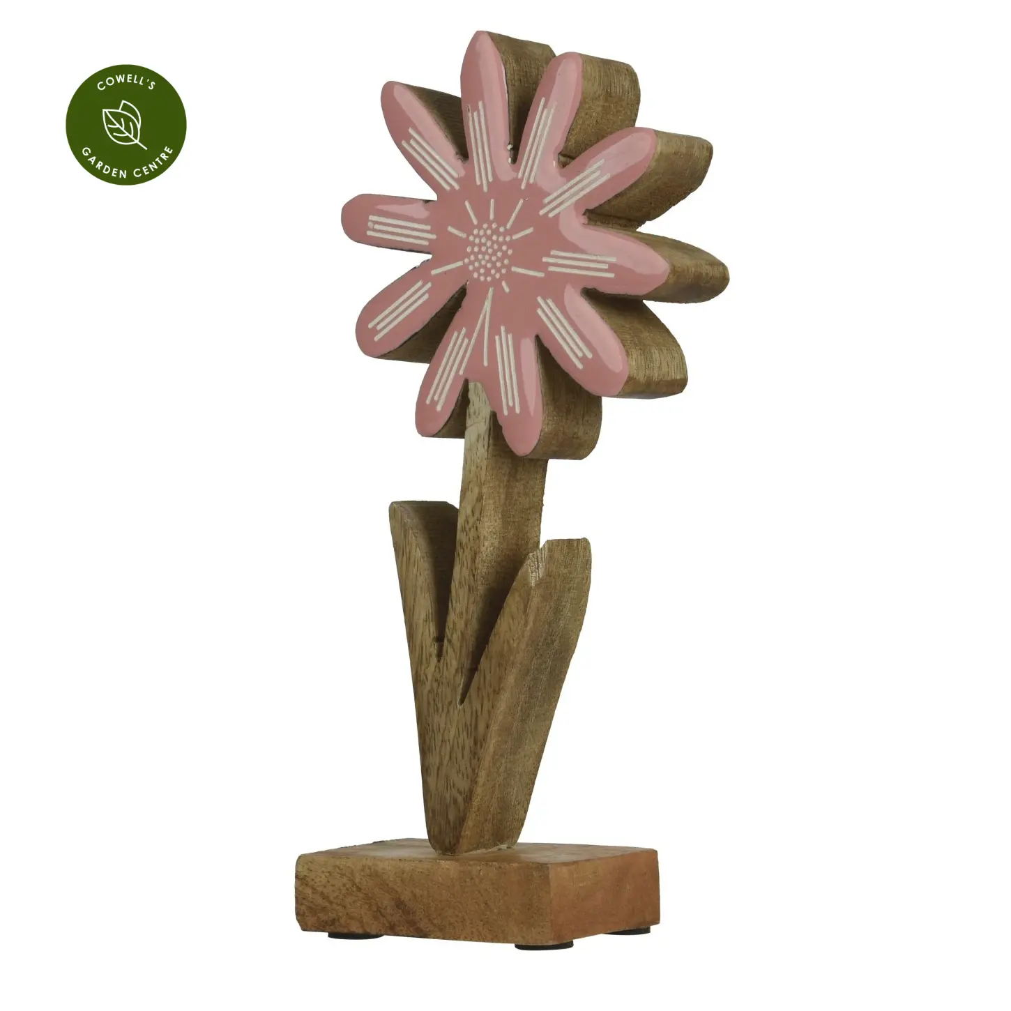 Mango wood spring daisy-like flower with enamel colour overlay.