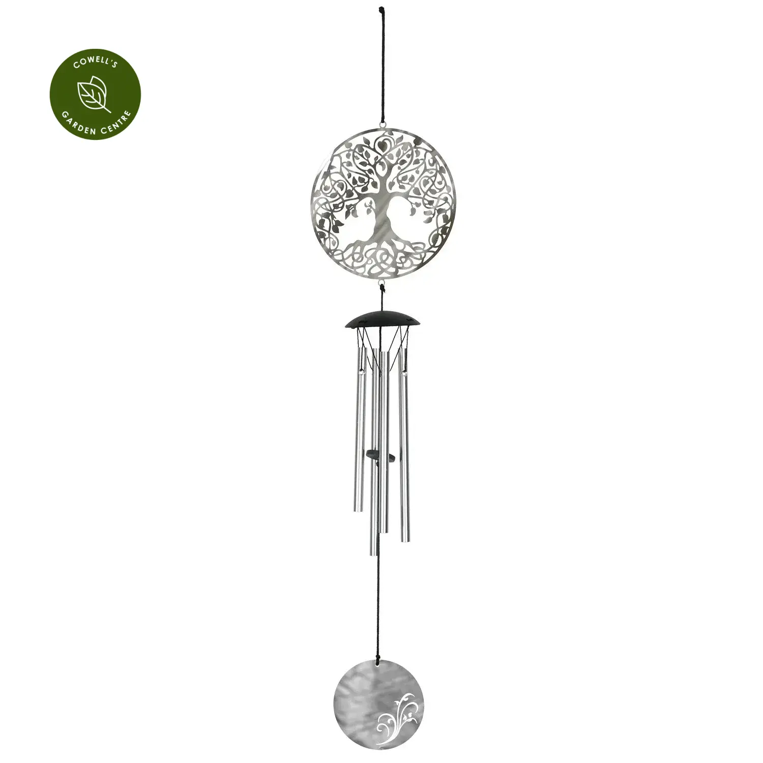 Add a gentle decorative touch to your garden with this elegant Tree of Life windchime. Featuring a polished stainless steel Tree of Life design and four solid aluminium rods, it produces a soft, calming sound when moved by the breeze. A meaningful symbol of strength, beauty and renewal, it also makes a thoughtful gift for many occasions.