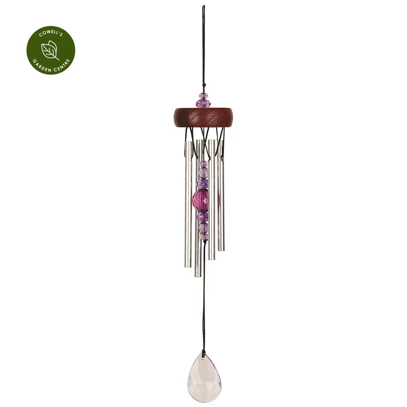 A charming, compact wind chime that brings gentle sound and movement to any space. Small enough to hang almost anywhere, it creates a soft, sweet tone when caught by the breeze. Crafted with a purple-finished ash wood top, durable nylon cords and rust-resistant aluminium tubes, it is designed for both beauty and lasting musical quality.